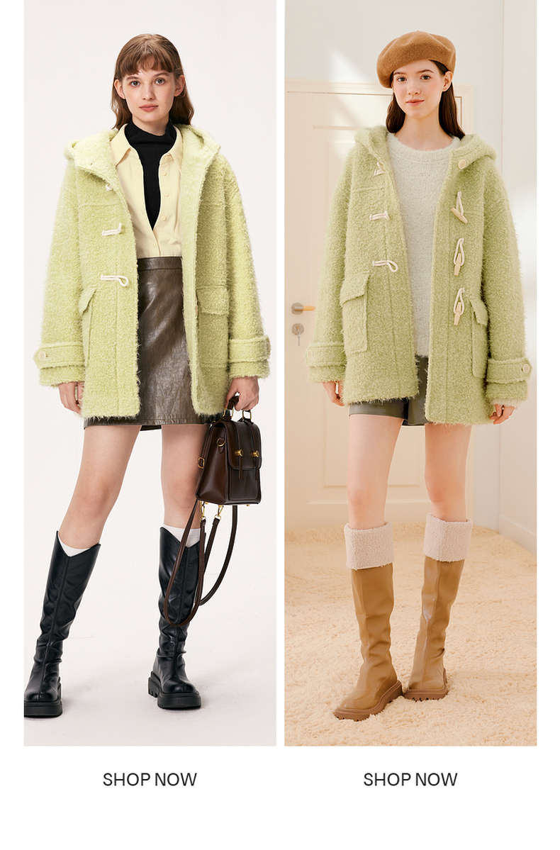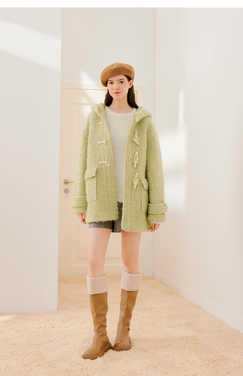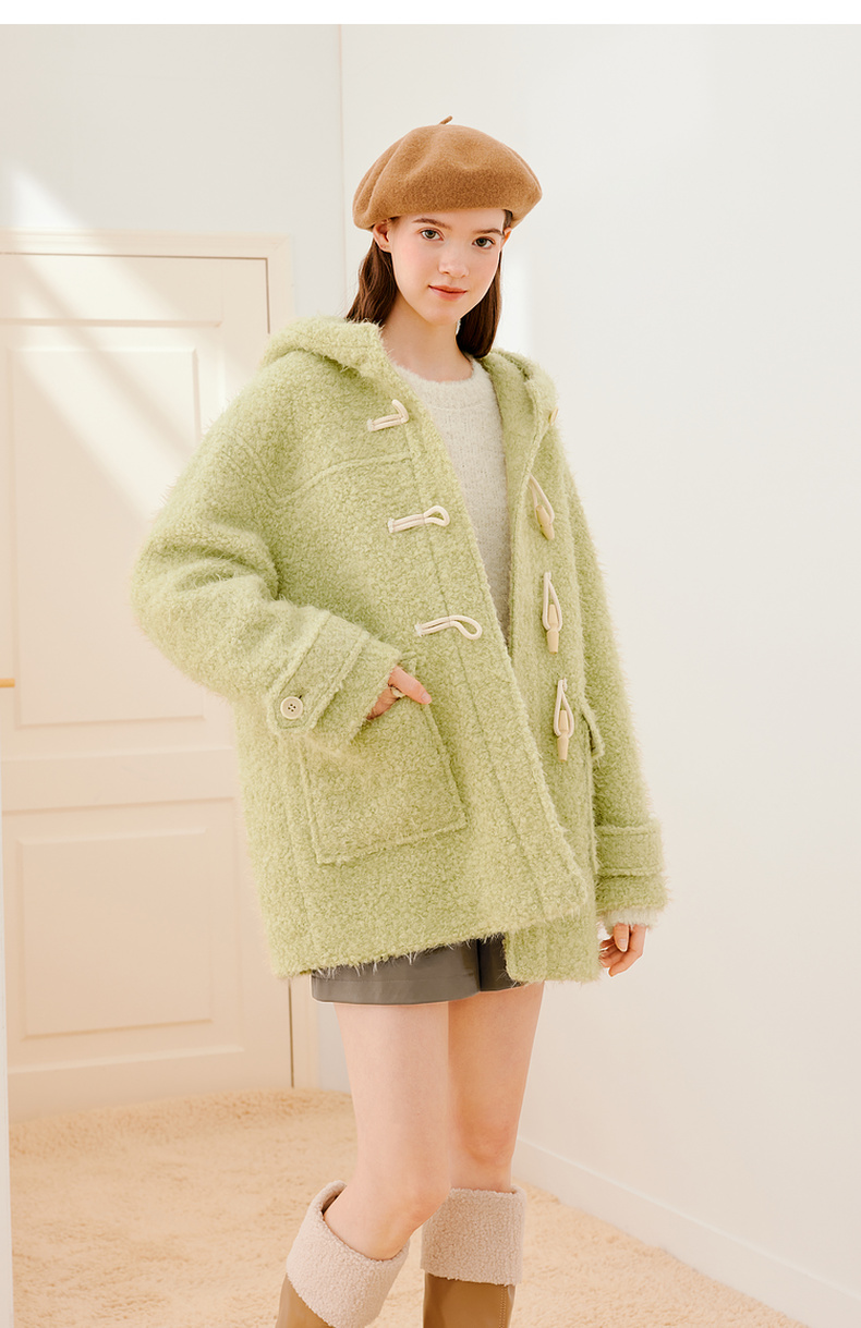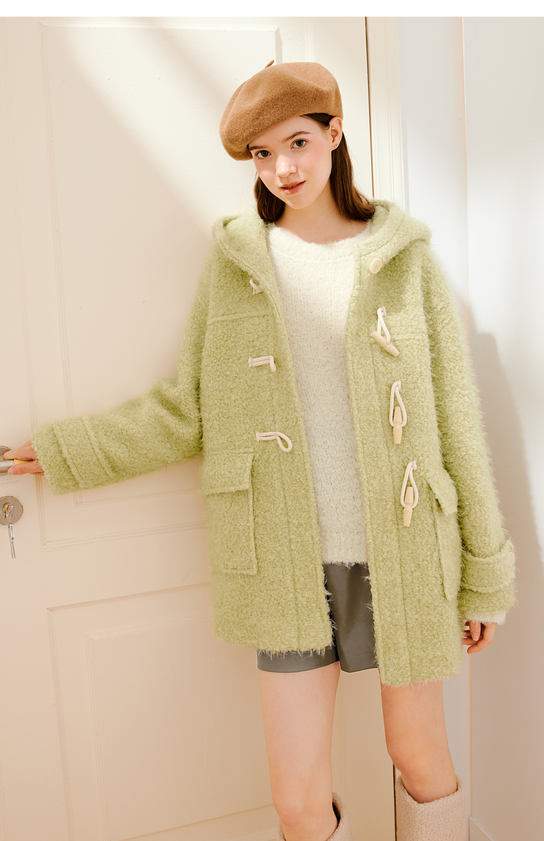 【严选】诗凡黎冬学院风牛角扣连帽外套SEA170131