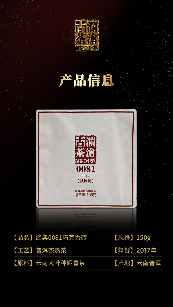 澜沧古茶2017年0081巧克力装普洱茶熟茶熟普砖茶150g*10片