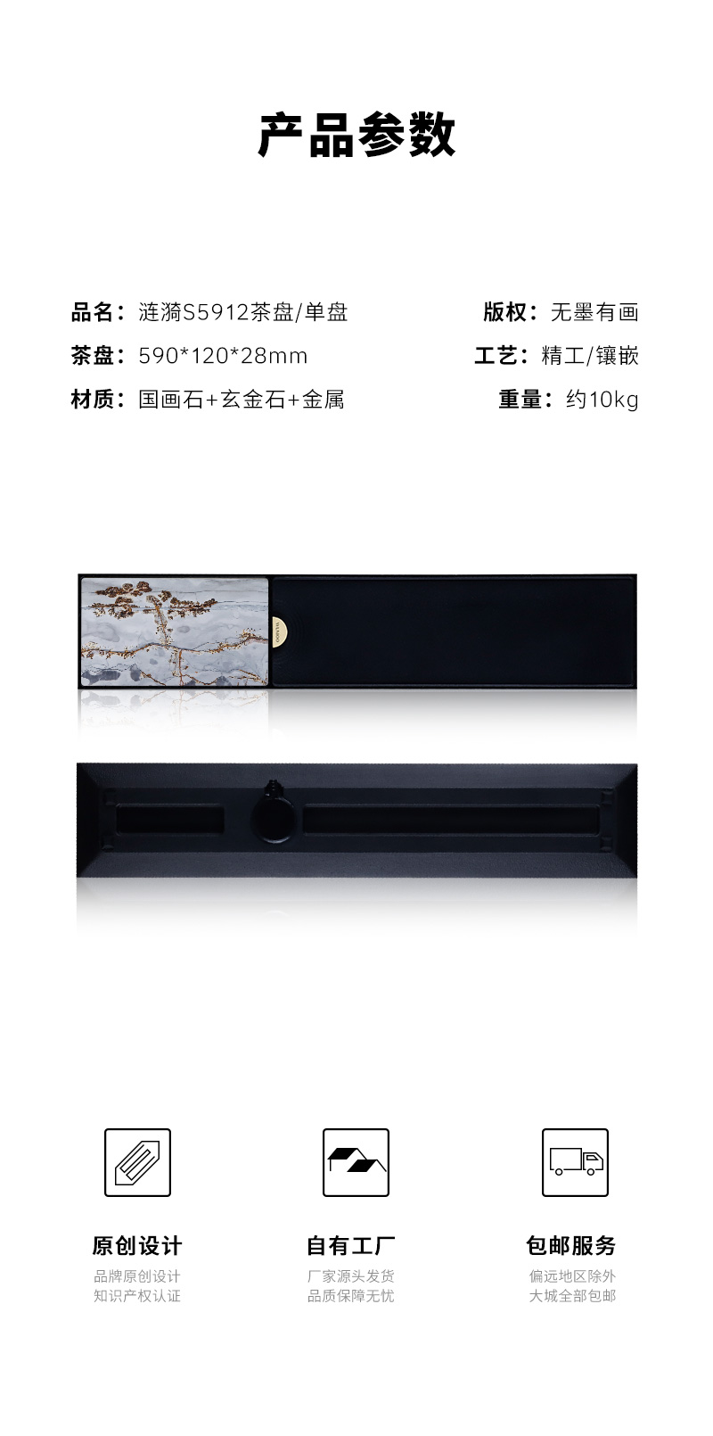 无墨 涟漪S5912系列国画石茶盘