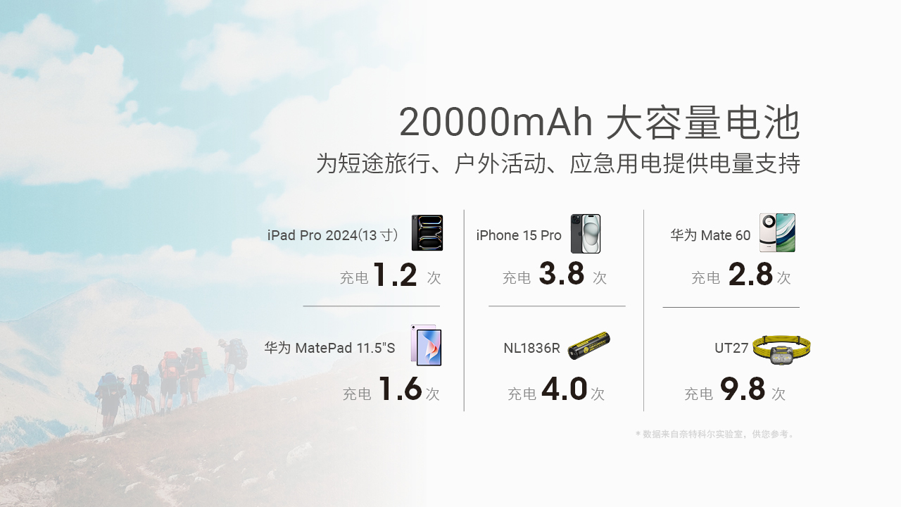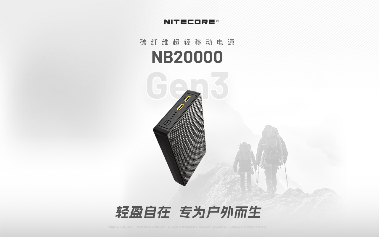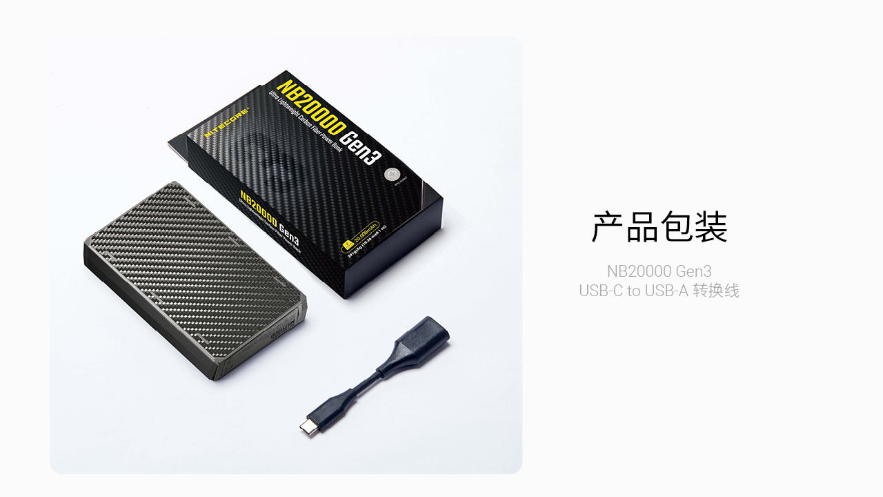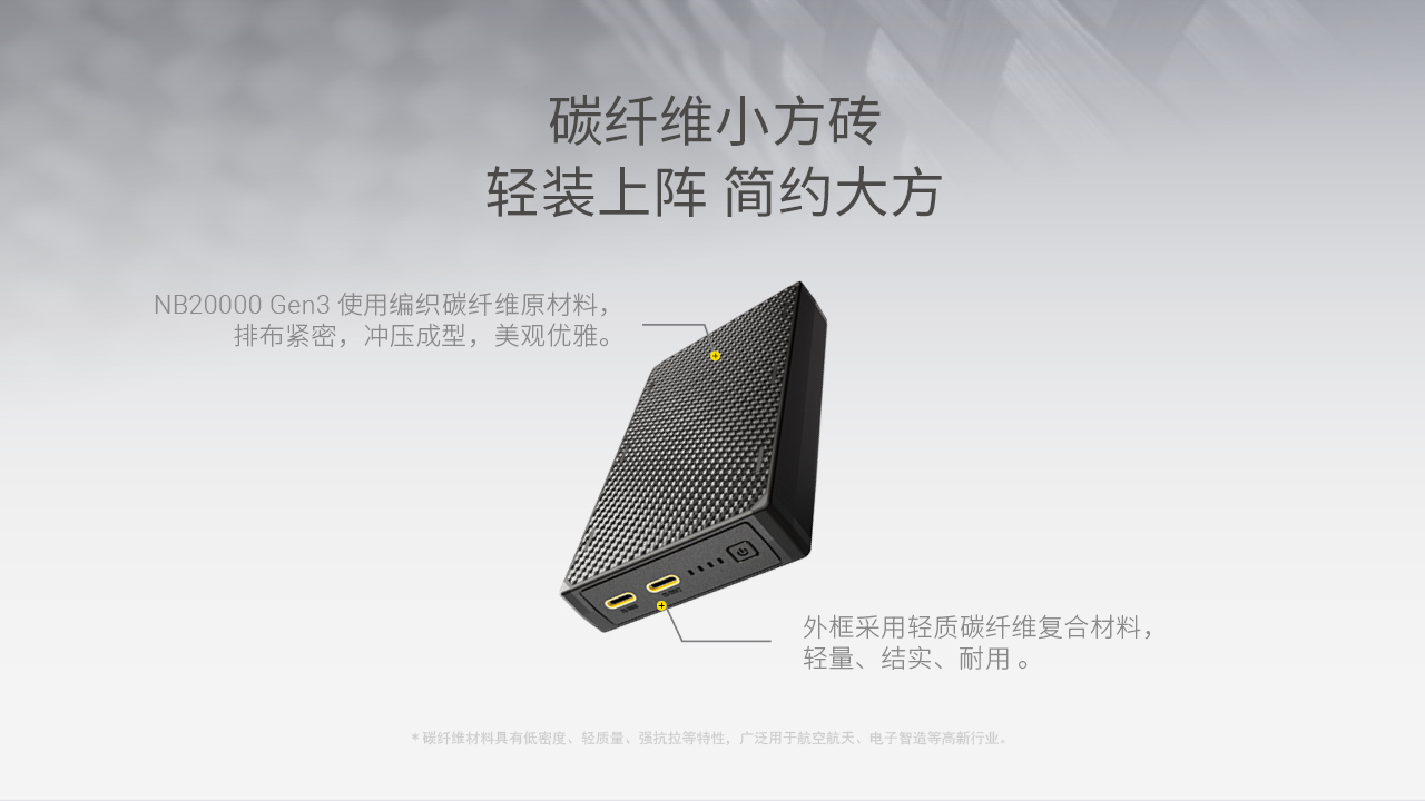 【秒杀!】NITECORE奈特科尔NB20000 GEN3碳纤维轻跑电源20000毫安快充移动电源