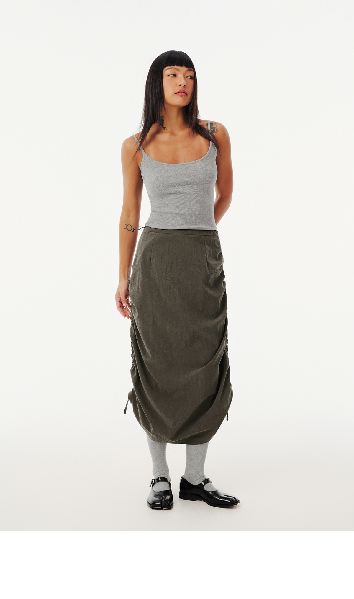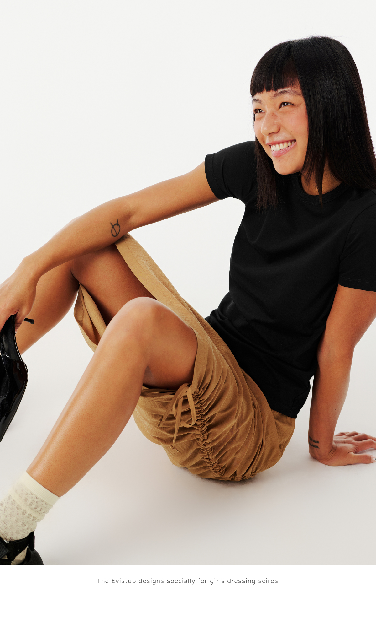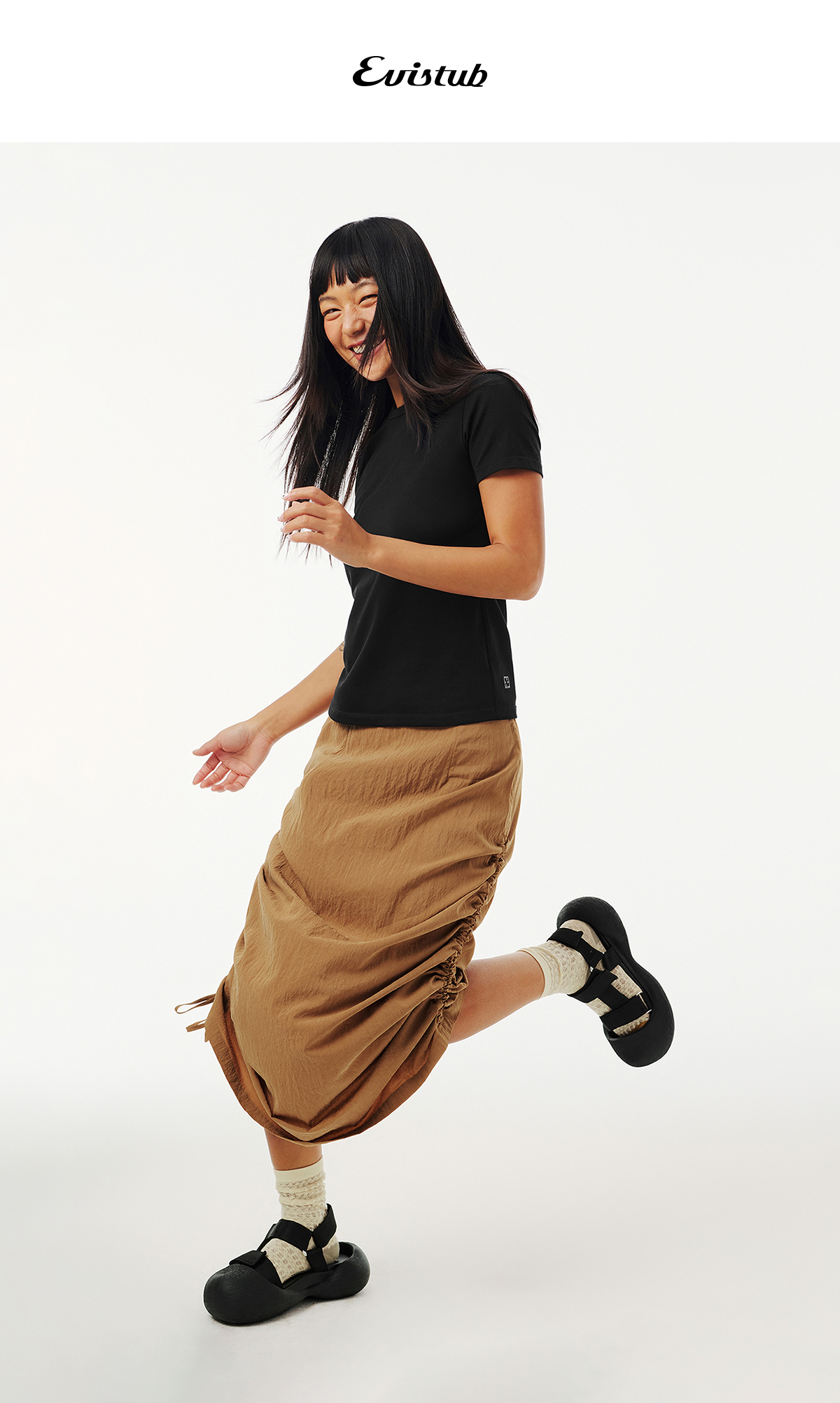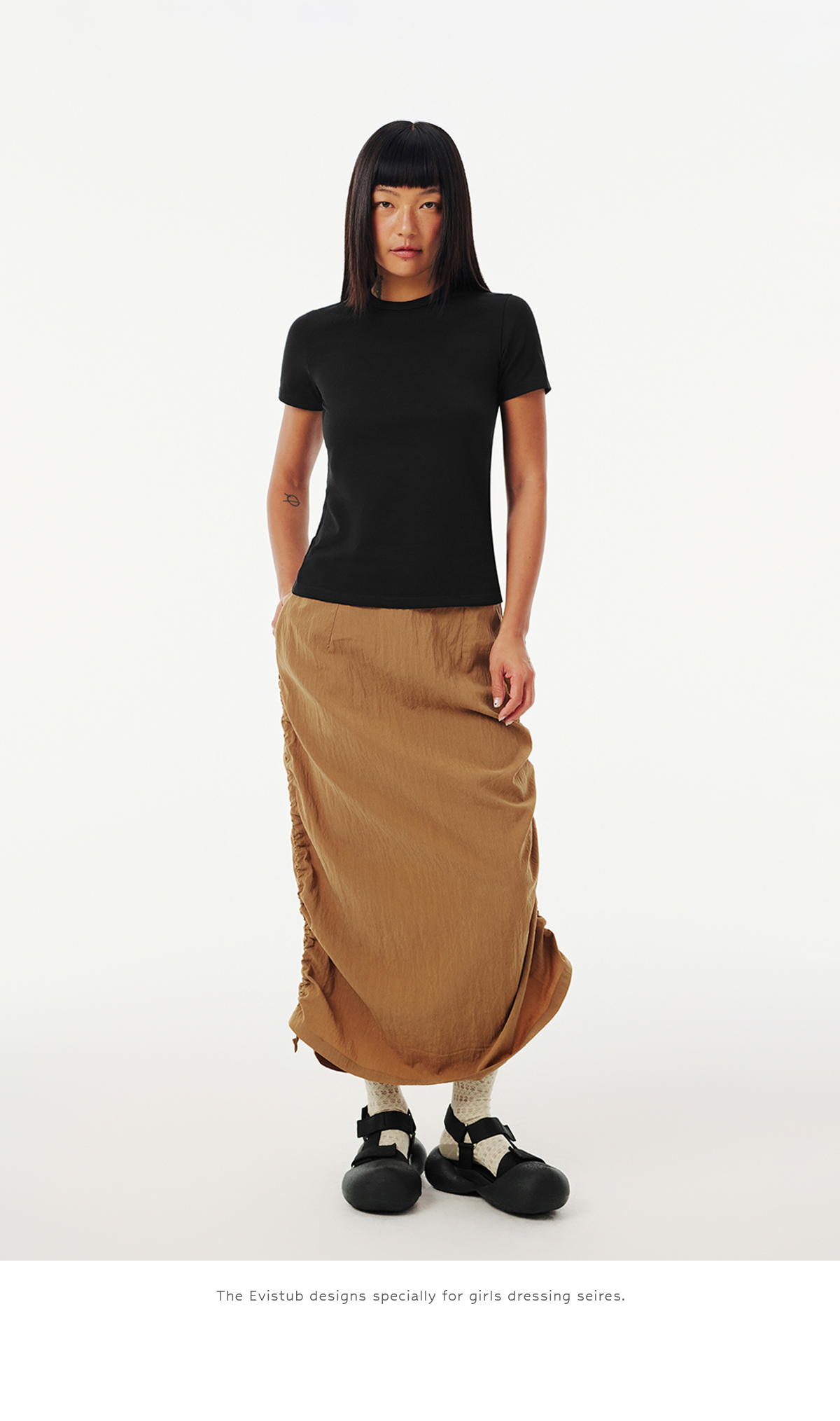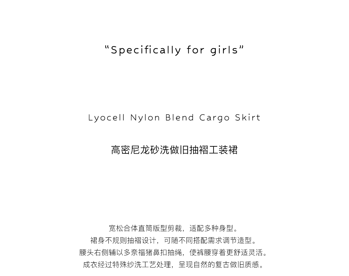 Evistub女装/E-5CCK055/复古砂洗抽绳工装裙女夏