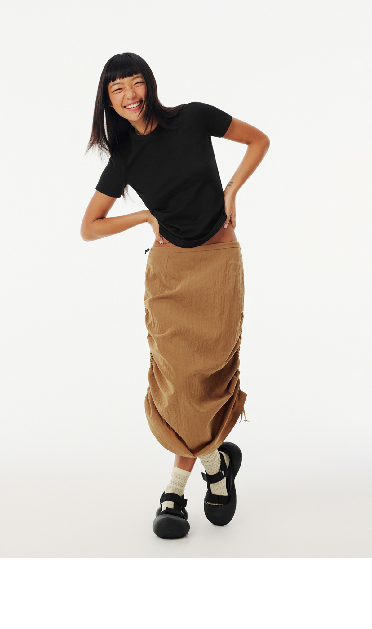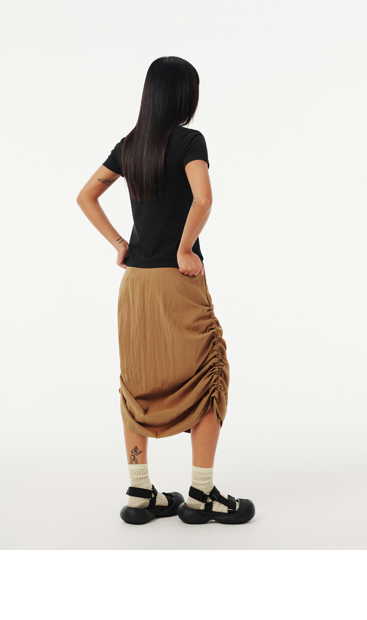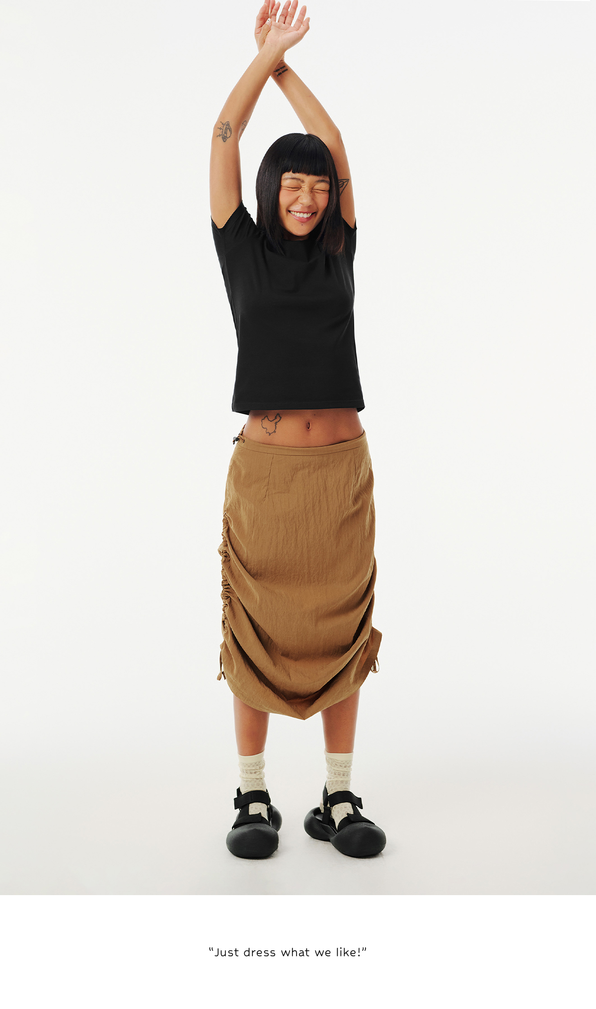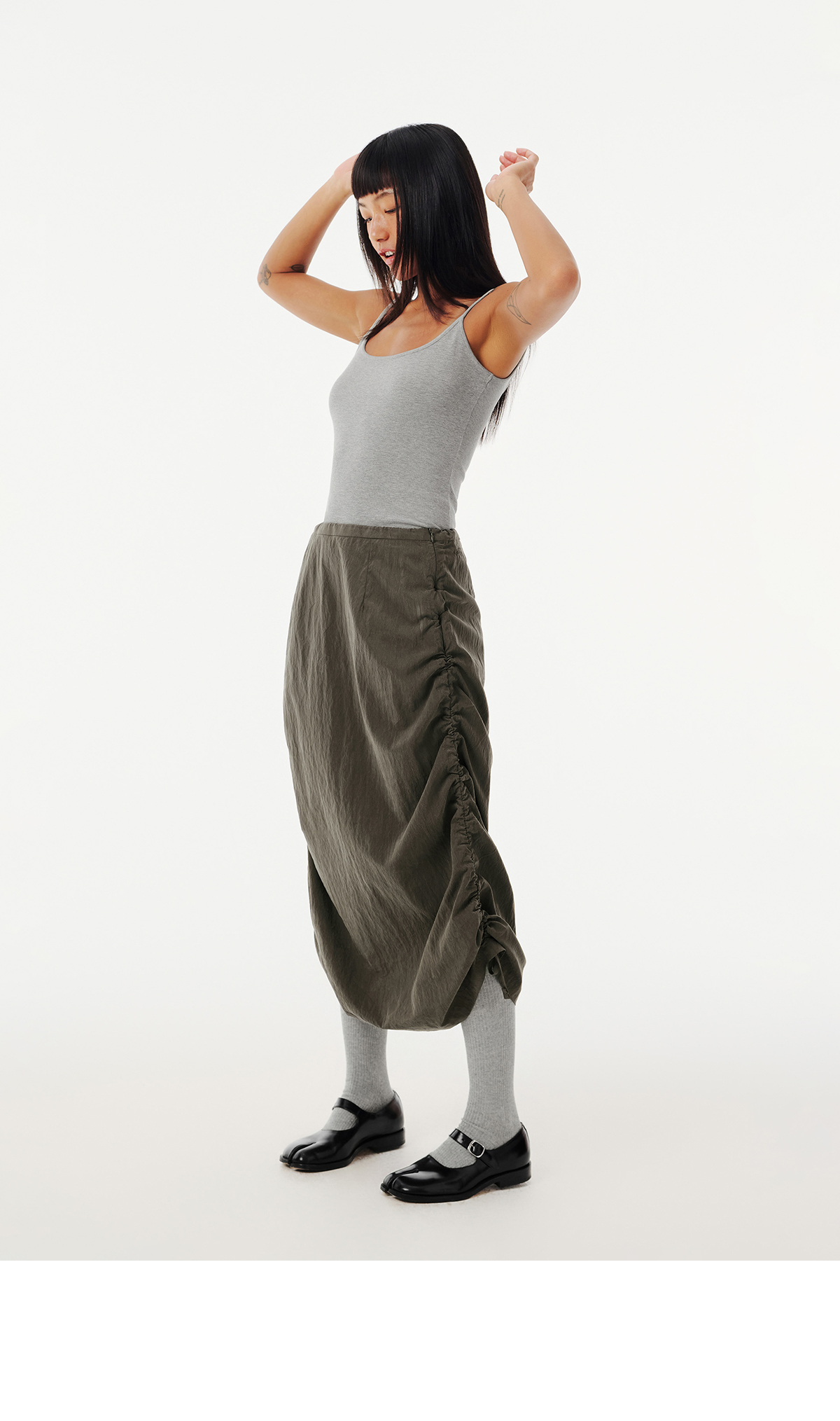 Evistub女装/E-5CCK055/复古砂洗抽绳工装裙女夏