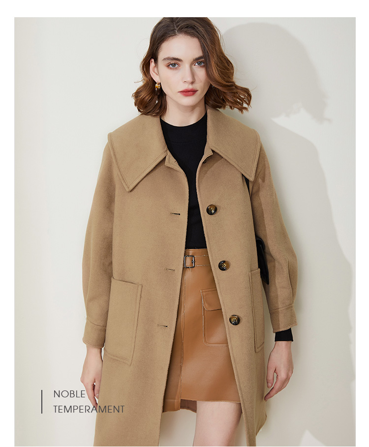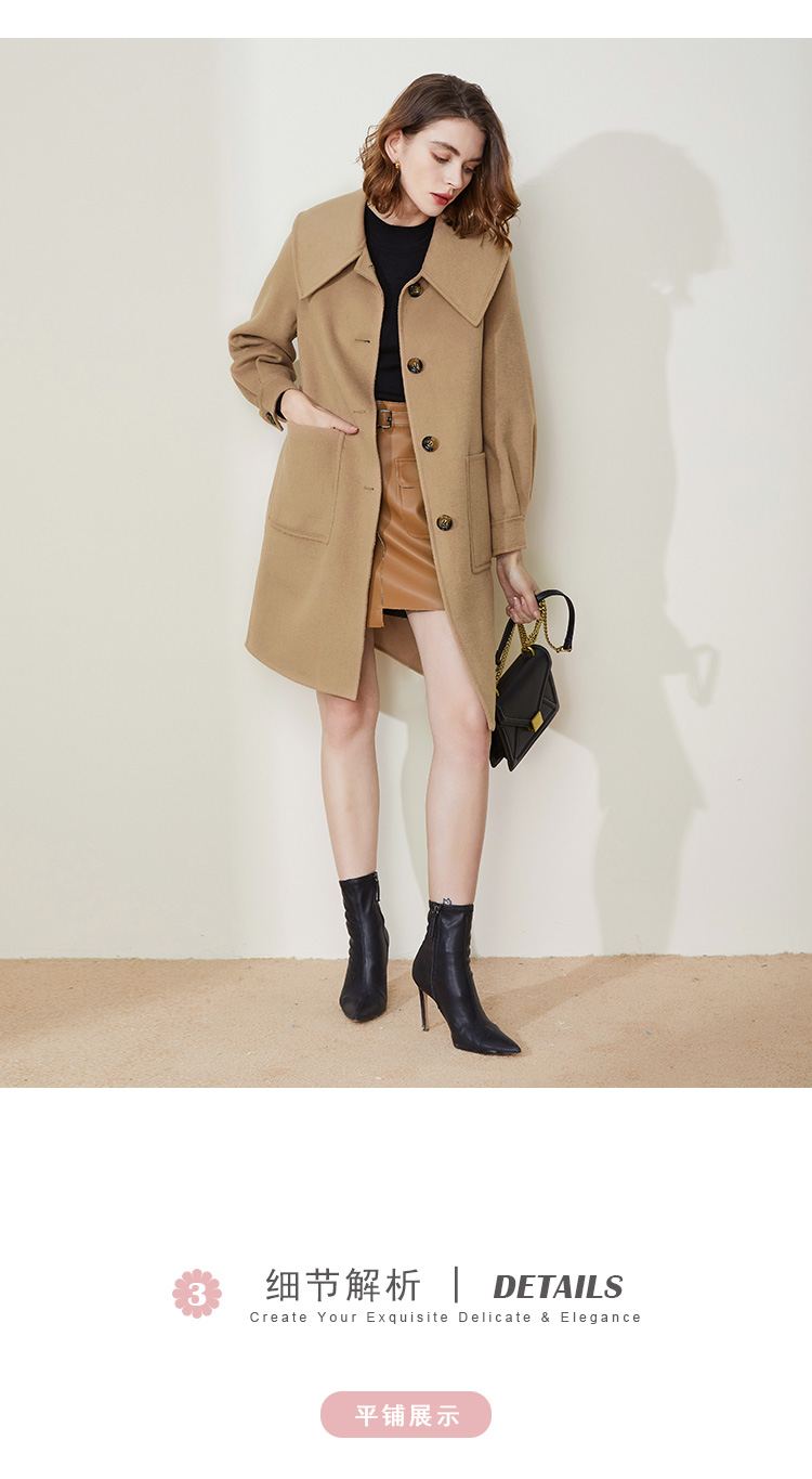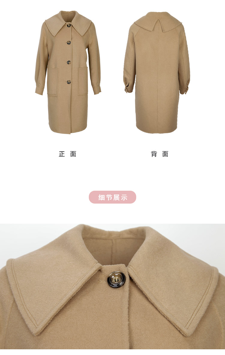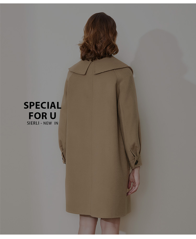 LH9A8斯尔丽瑟俪2021新款翻领淑女气质单排扣大口袋收口袖大衣女双面呢