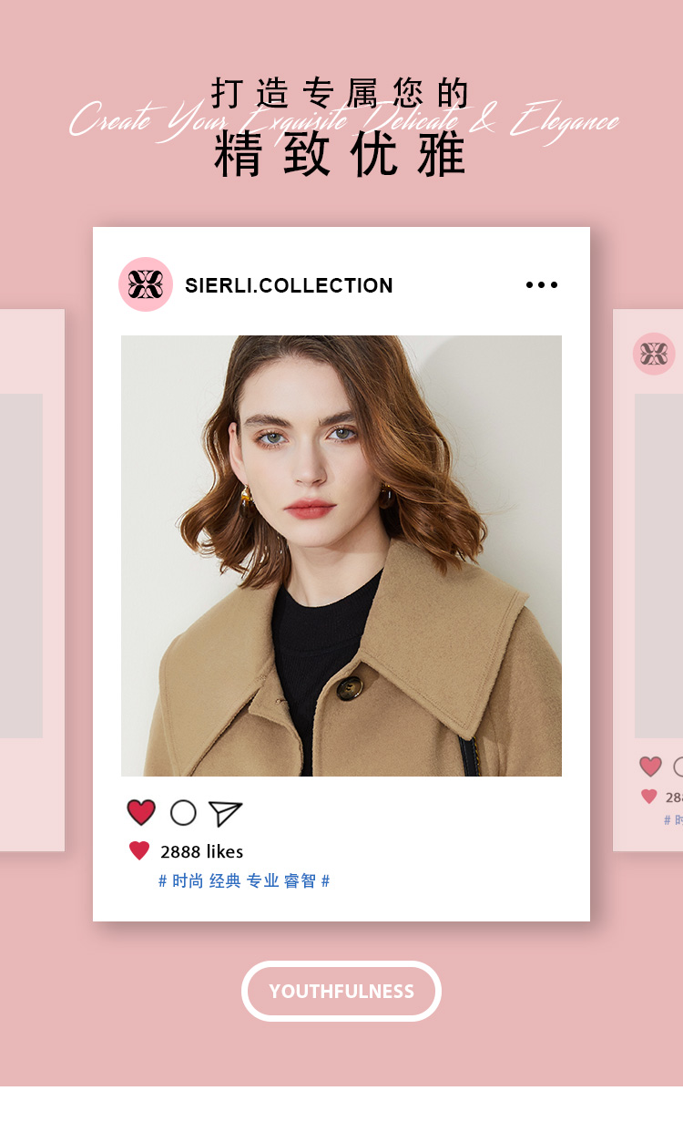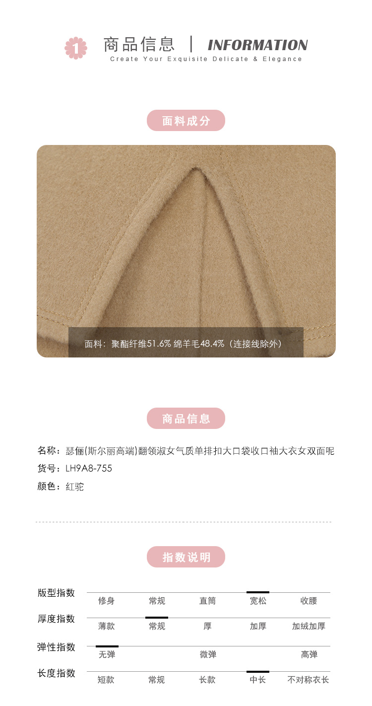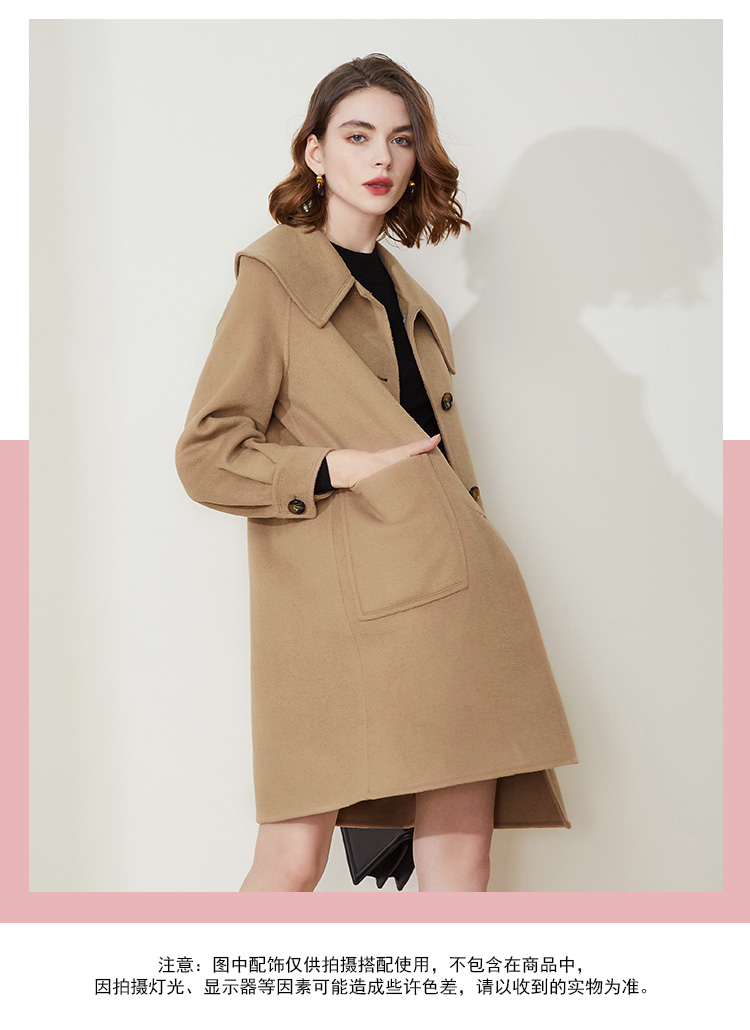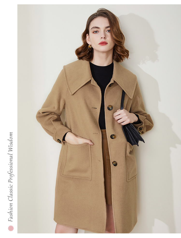 LH9A8斯尔丽瑟俪2021新款翻领淑女气质单排扣大口袋收口袖大衣女双面呢