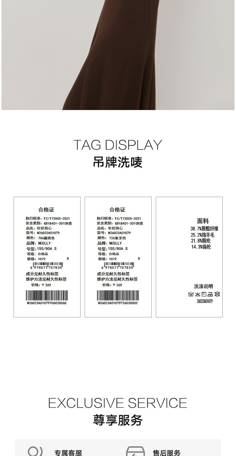 NEELLY纳俪商场同款春新款时尚舒适修身针织背心女亲肤百搭款上衣N26023A01079