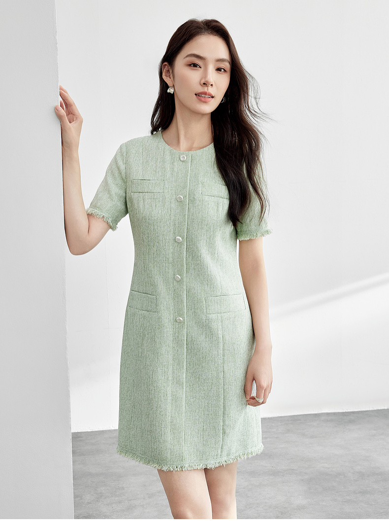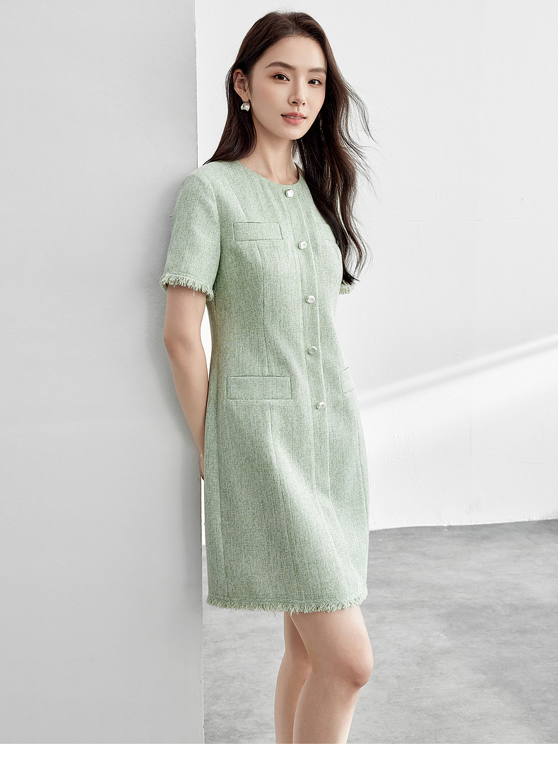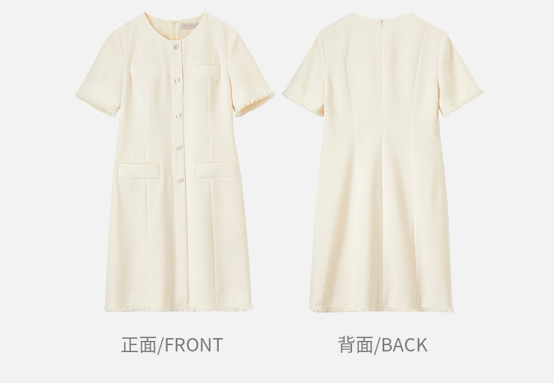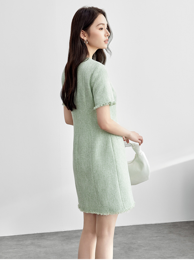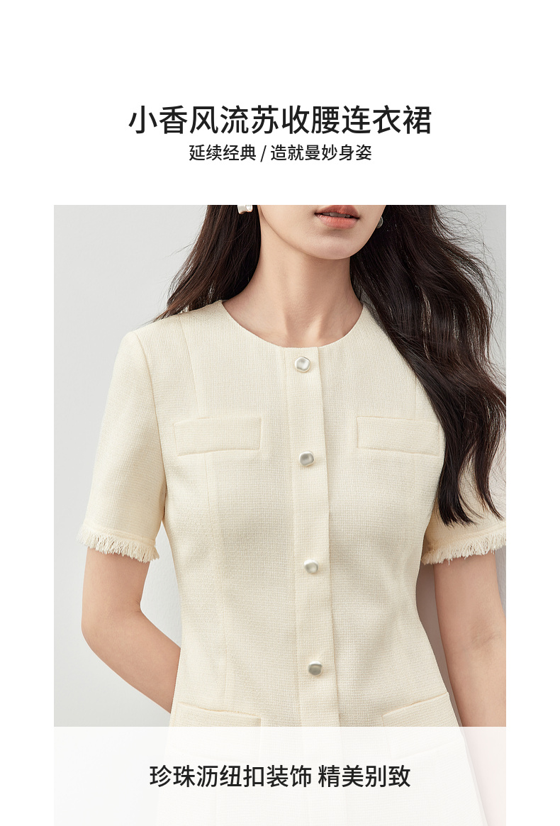 【内购】小香风优雅圆领手工流苏收腰显瘦短袖连衣裙-151L58195
