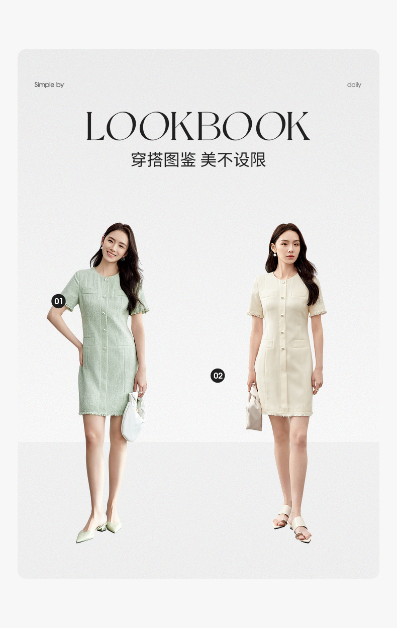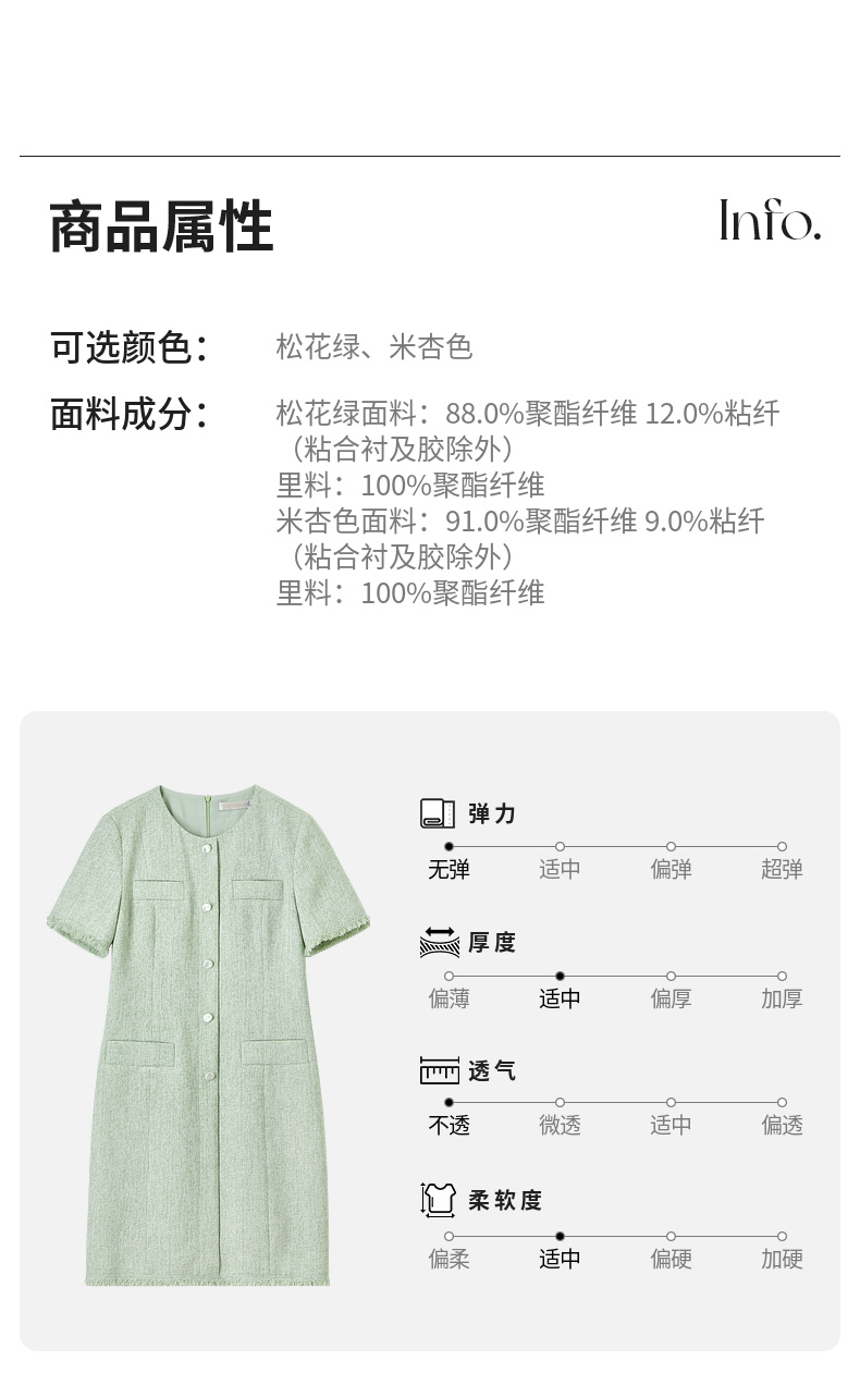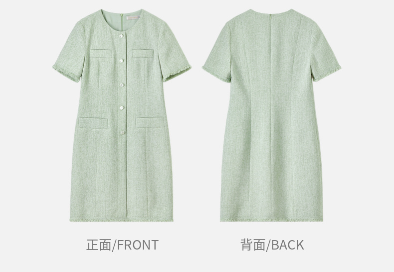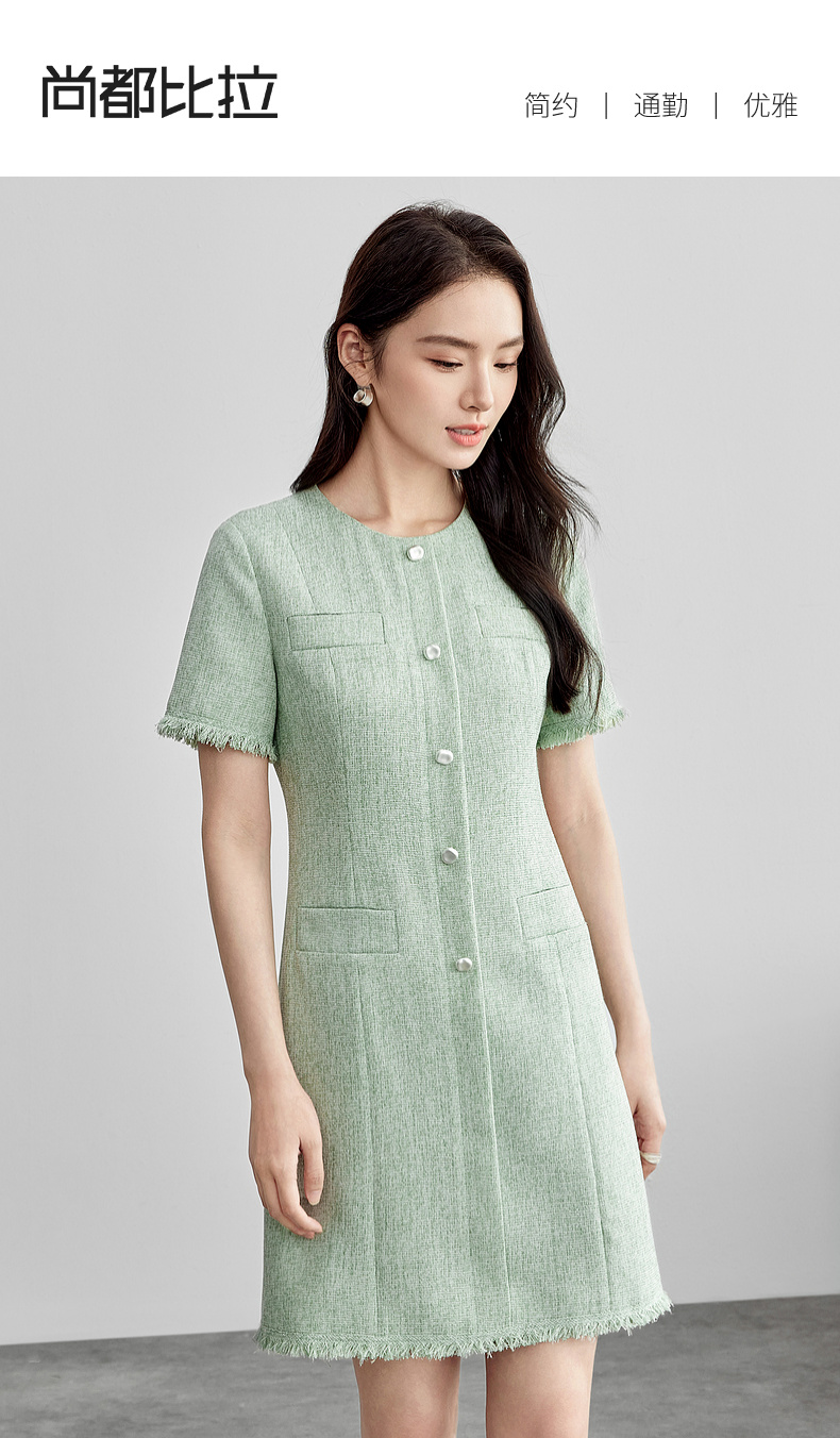 【内购】小香风优雅圆领手工流苏收腰显瘦短袖连衣裙-151L58195