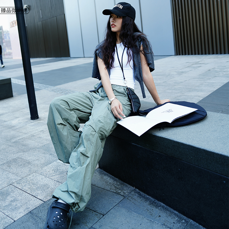 哈瓦塔女士抽绳高腰降落伞工装裤H341120