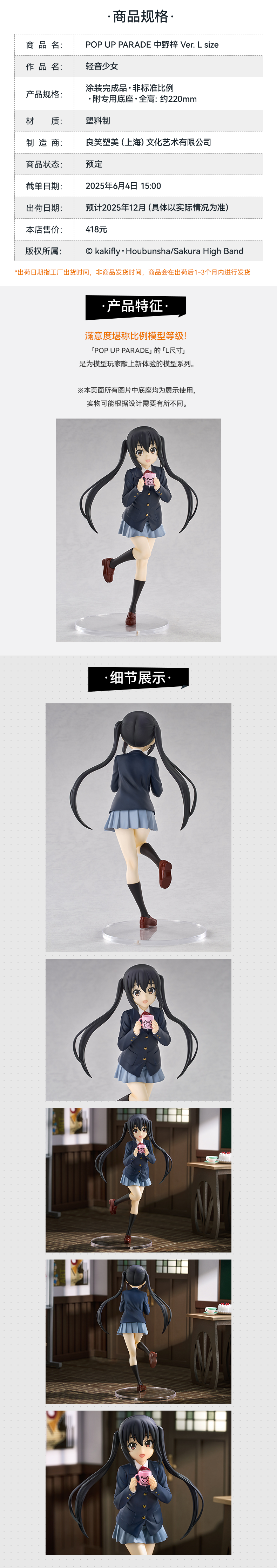 【GSC现货】POP UP PARADE 中野梓 Ver. L size 轻音少女