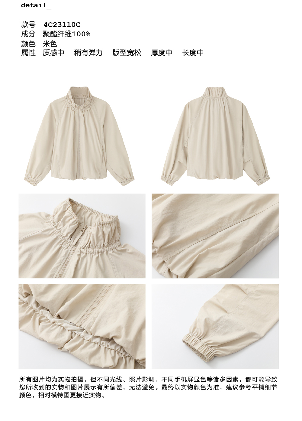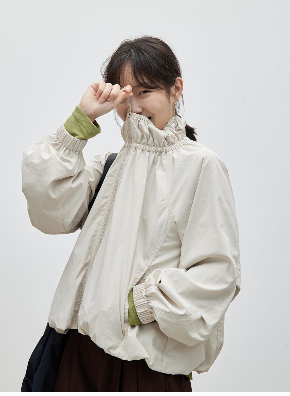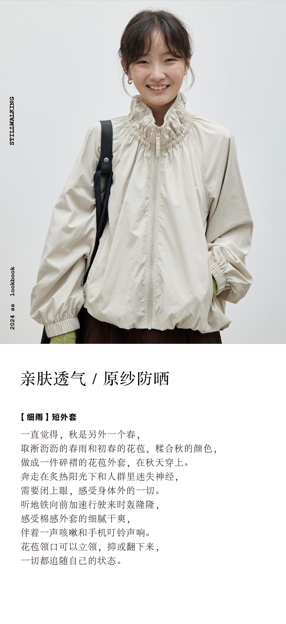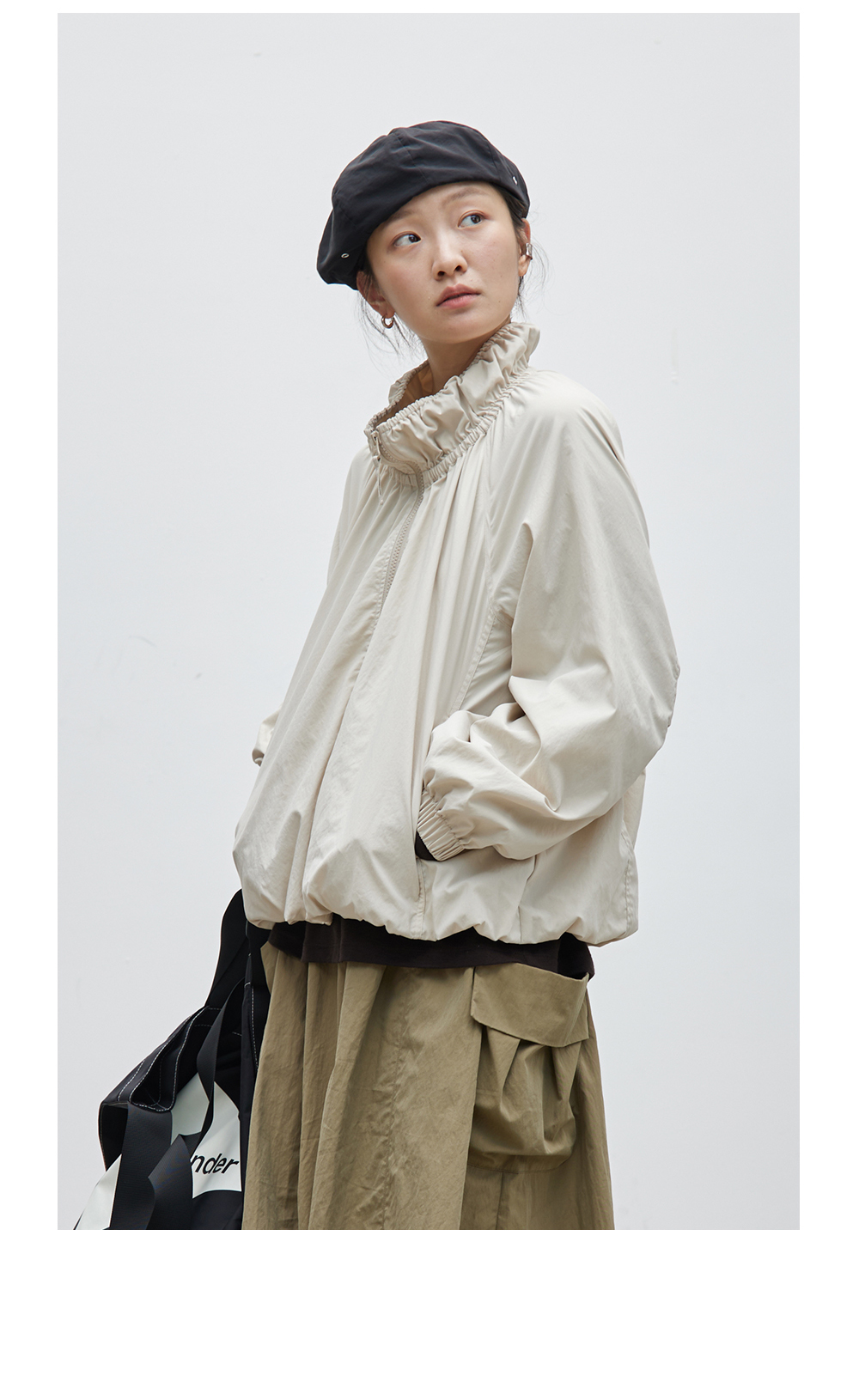 步履不停/4C23110C/户外小立领拉链花苞女生感短外套