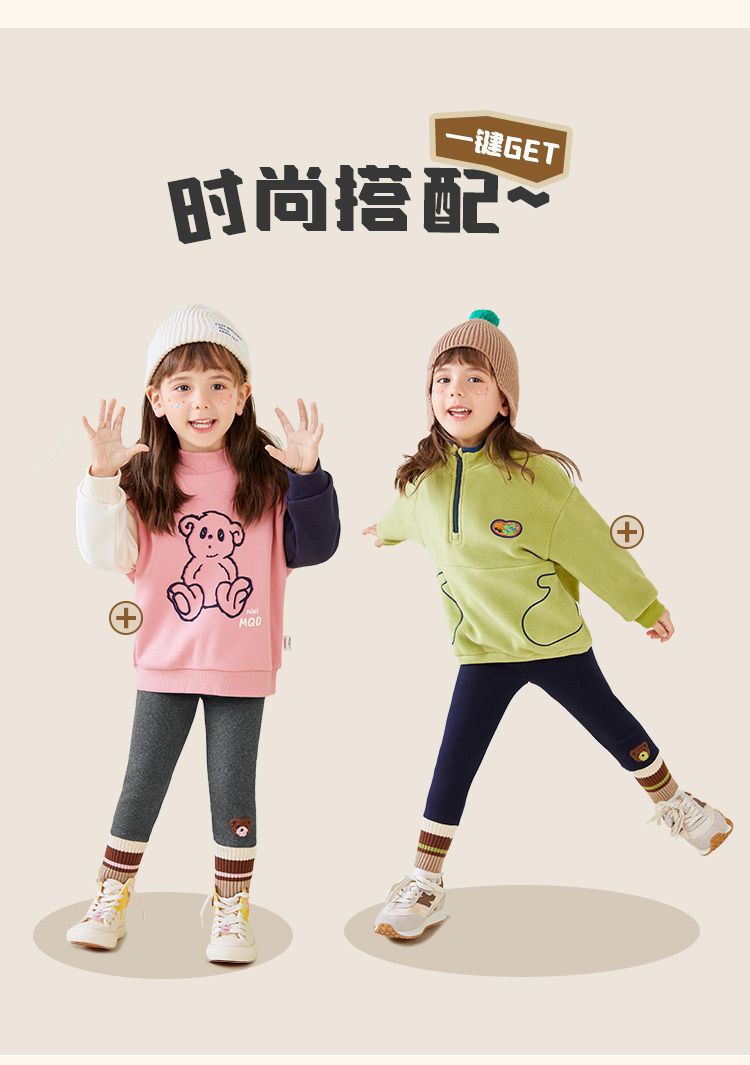 【奥利绒】【80-140】【MQDmini】女童加绒打底裤搭保暖长裤