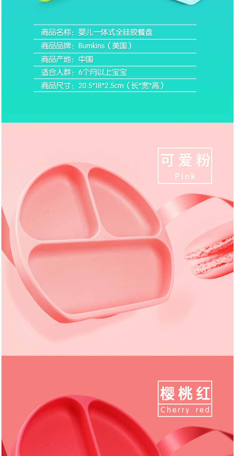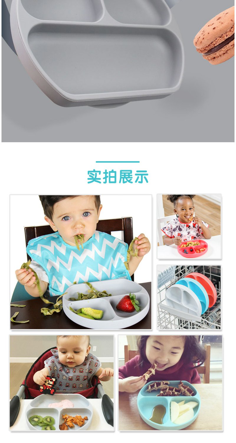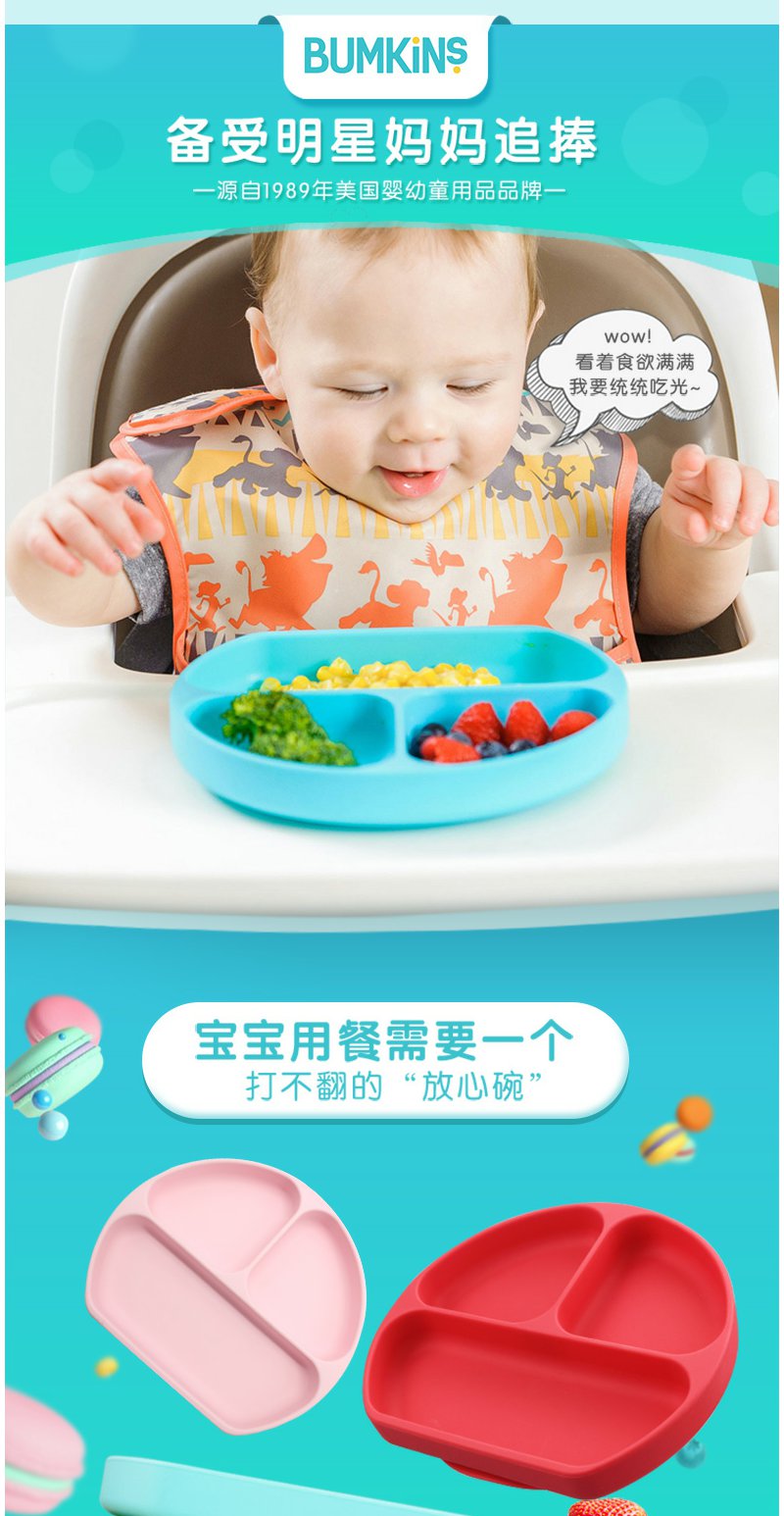 现货)Bumkins儿童餐盘分格吸盘碗宝宝餐具婴儿硅胶防摔辅食碗