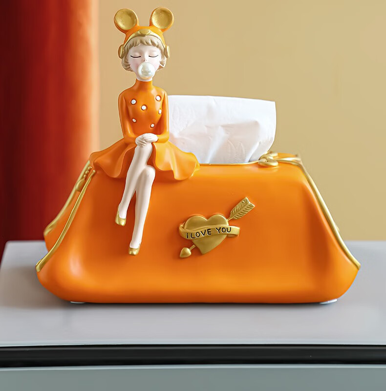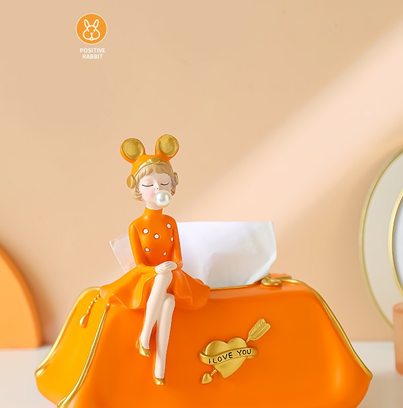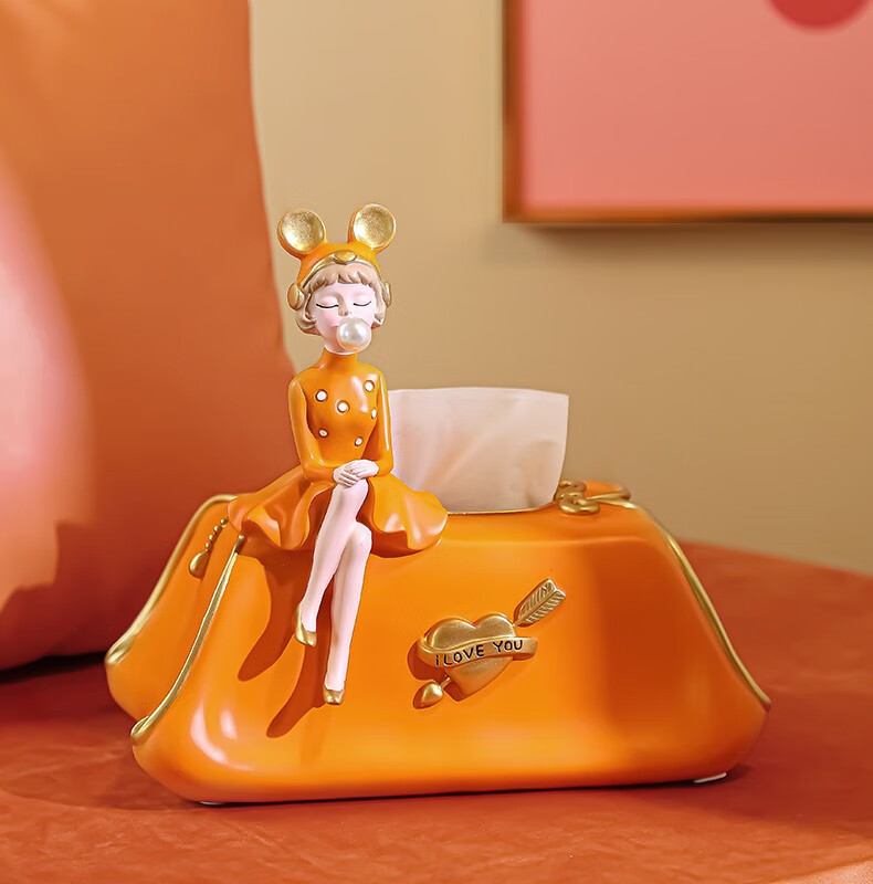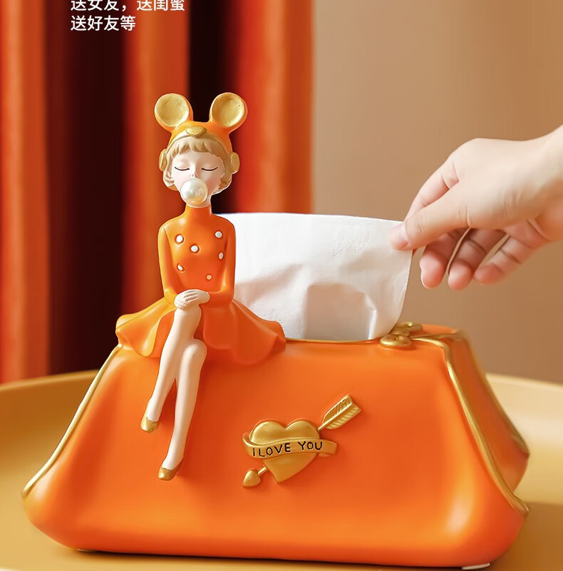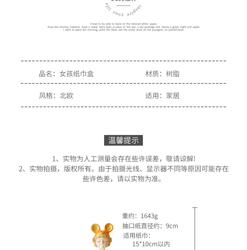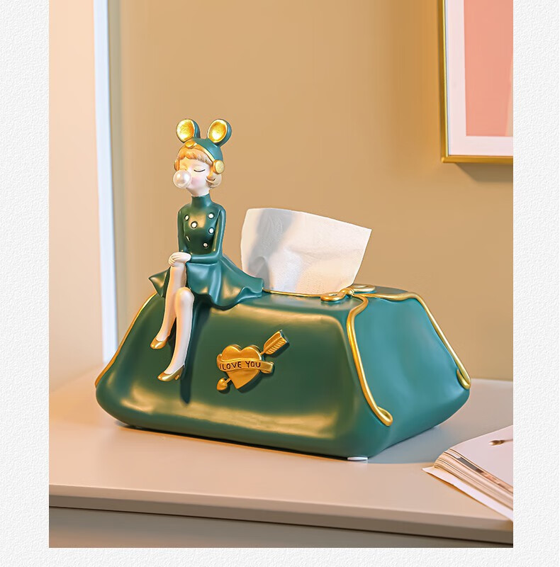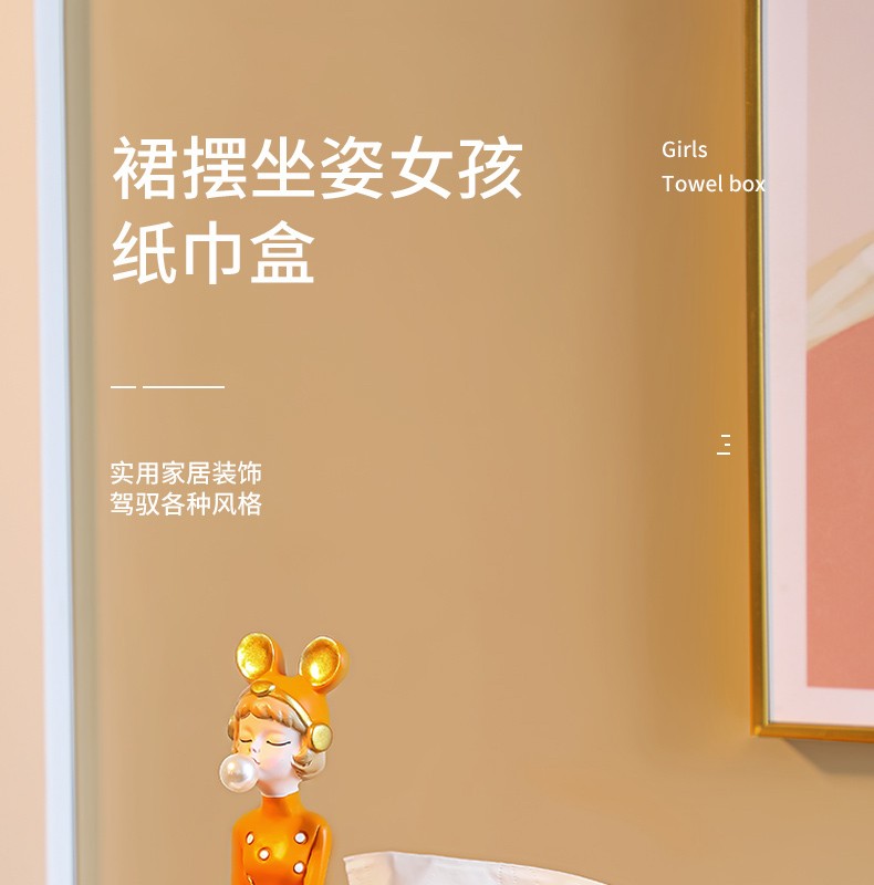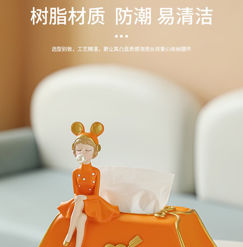 轻奢纸巾盒客厅家用抽纸盒北欧简约创意客厅餐厅卧室办公室纸巾盒摆设装饰品乔迁新居送礼纸巾收纳 泡泡女孩纸巾盒