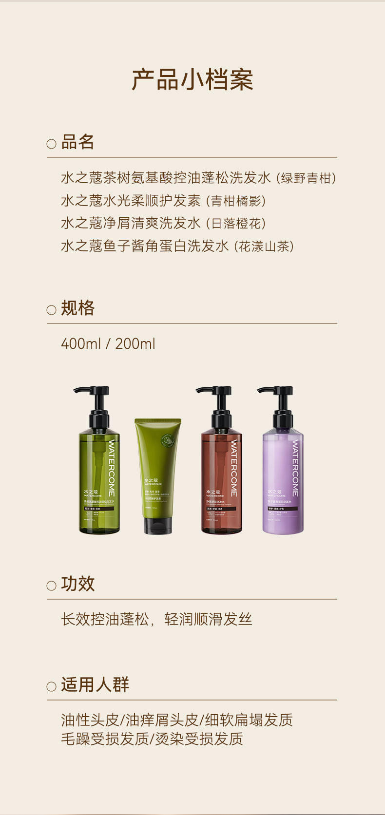 【任3件99元】【会员福利】水之蔻洗发水系列控油/去屑/蓬松/滋润/修护洗发水