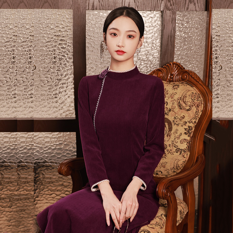 新款秋冬,女新中式国风两件套装年轻款少女改良旗袍马甲民国风GSJ-3522