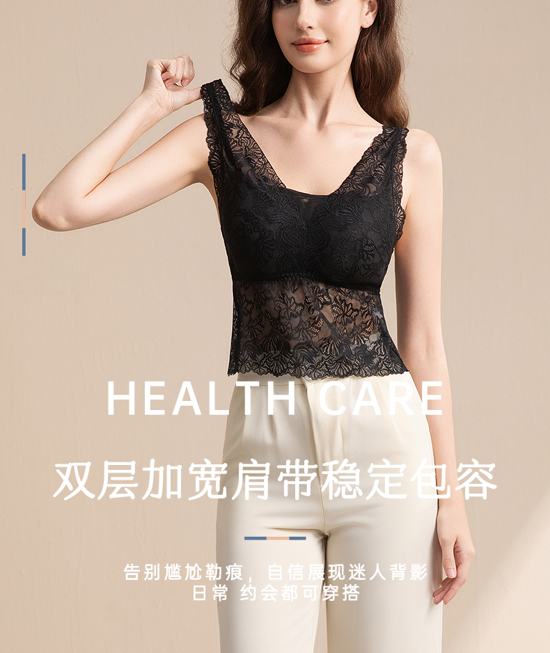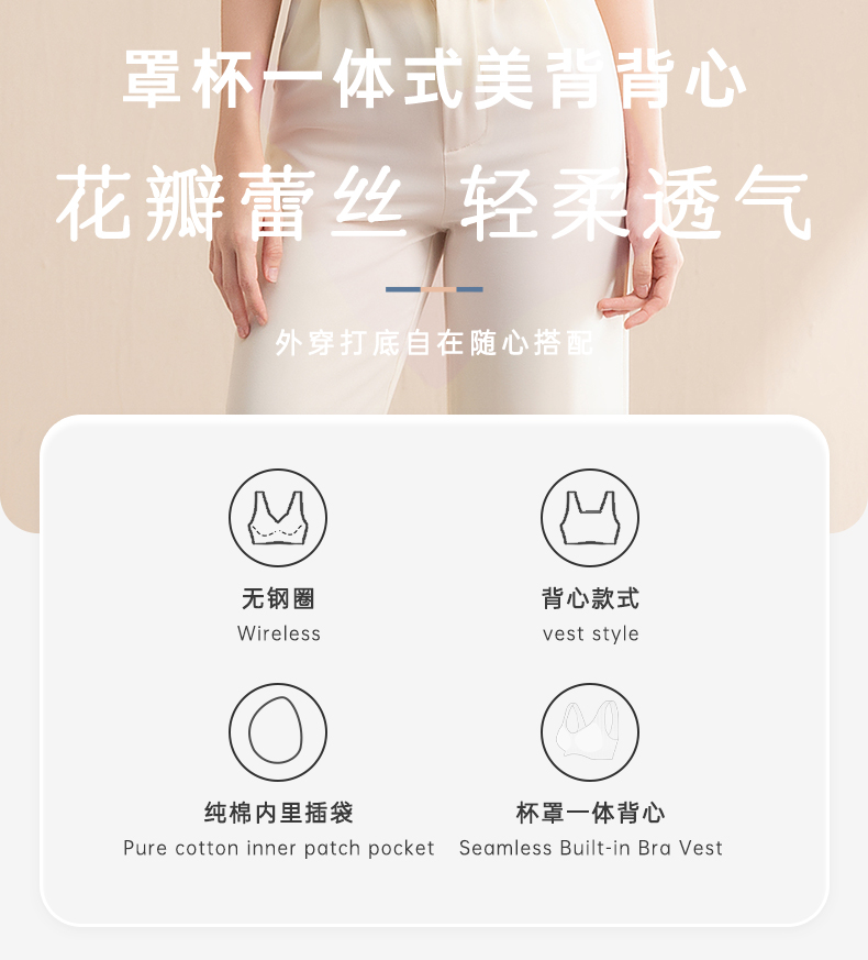 【爱慕新品|蔓兮】爱慕义乳新品罩杯一体式美背背心花瓣蕾丝法式美学轻柔透气