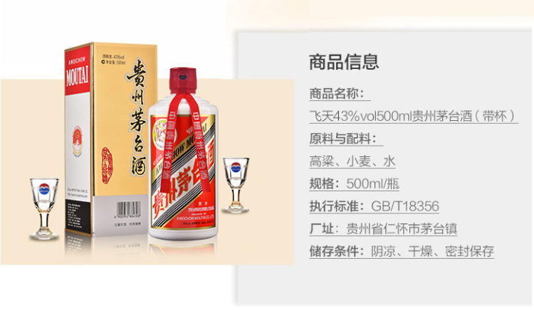 贵州茅台酒 43度飞天茅台 酱香型白酒 500毫升