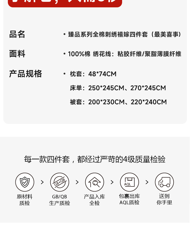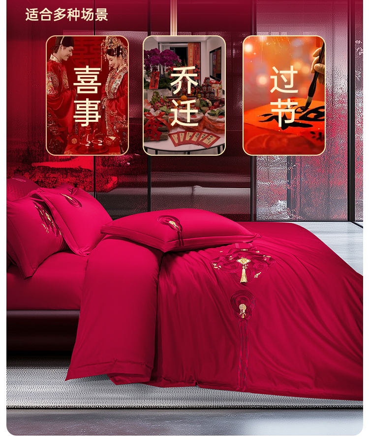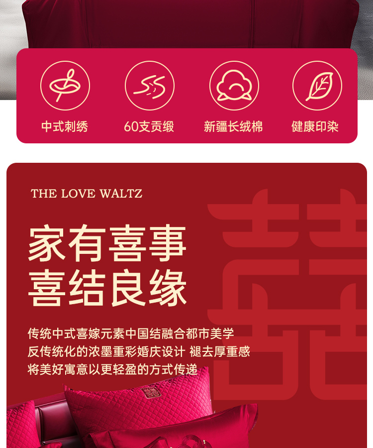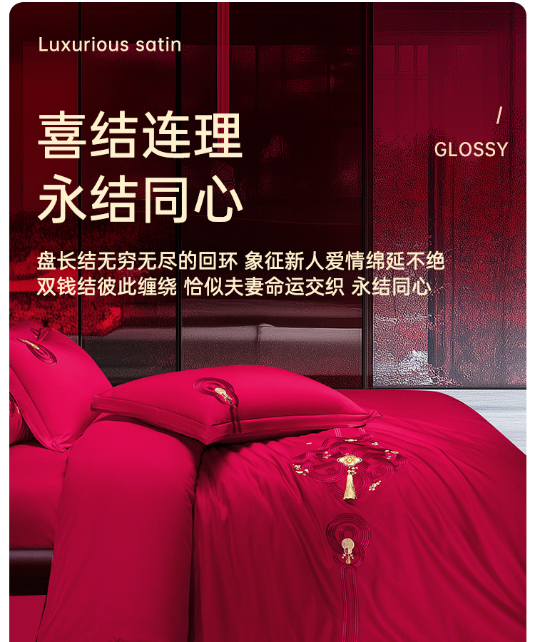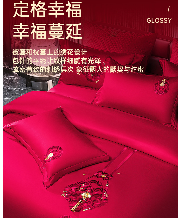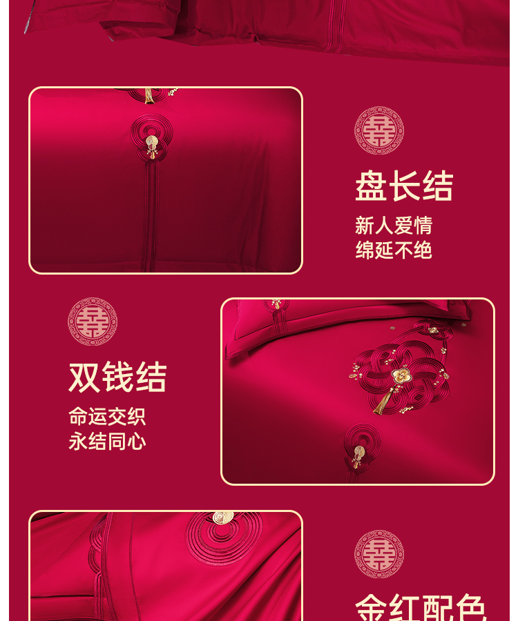 臻品系列全棉刺绣禧嫁四件套(最美喜事)