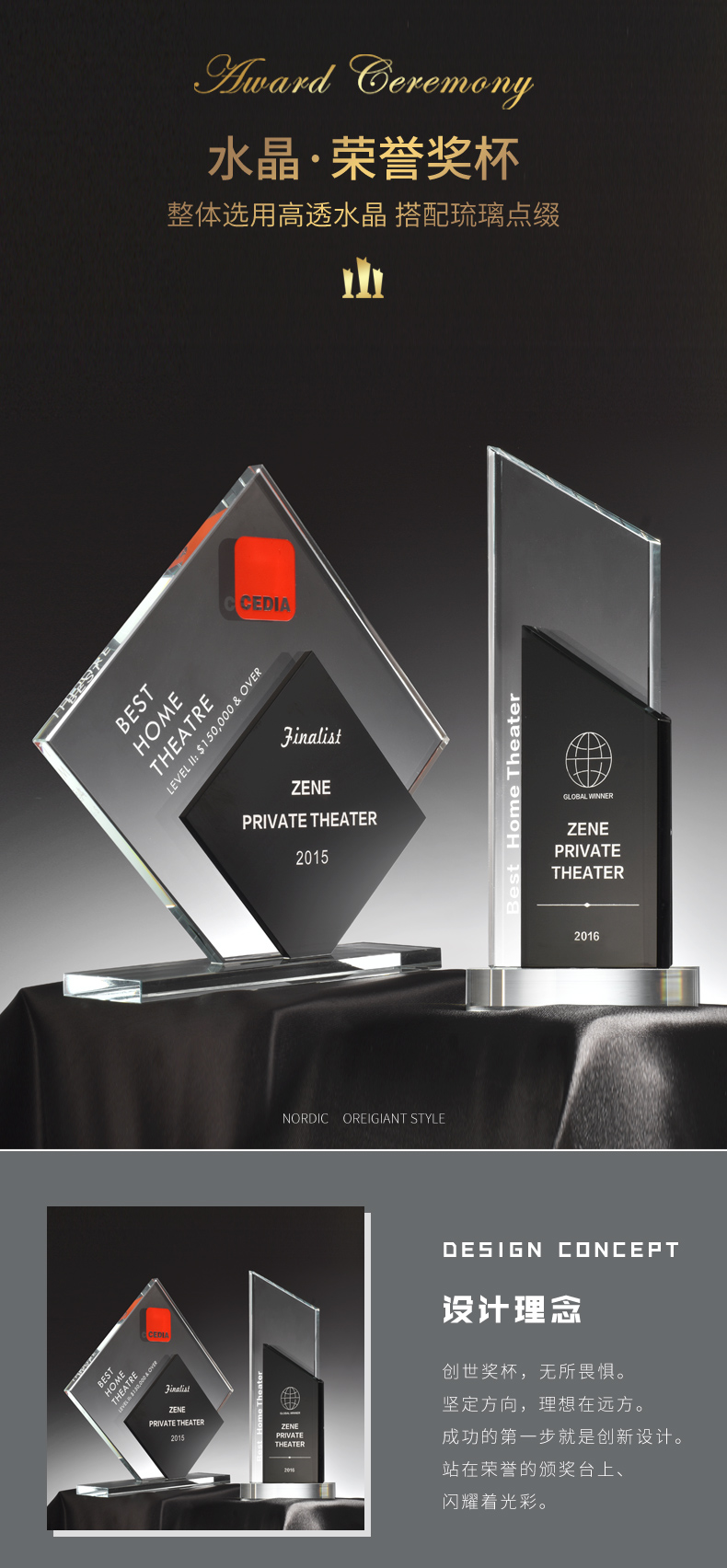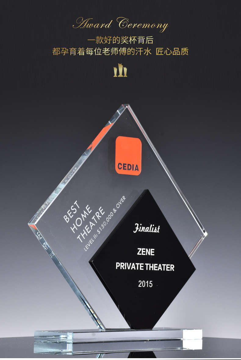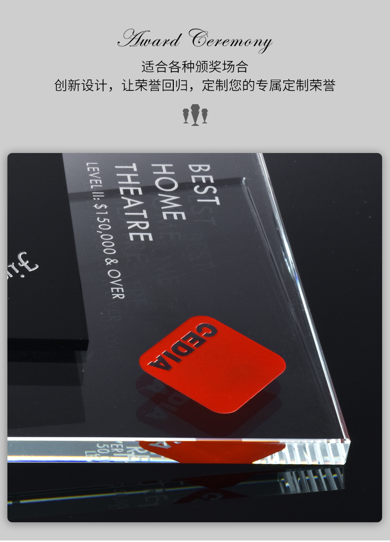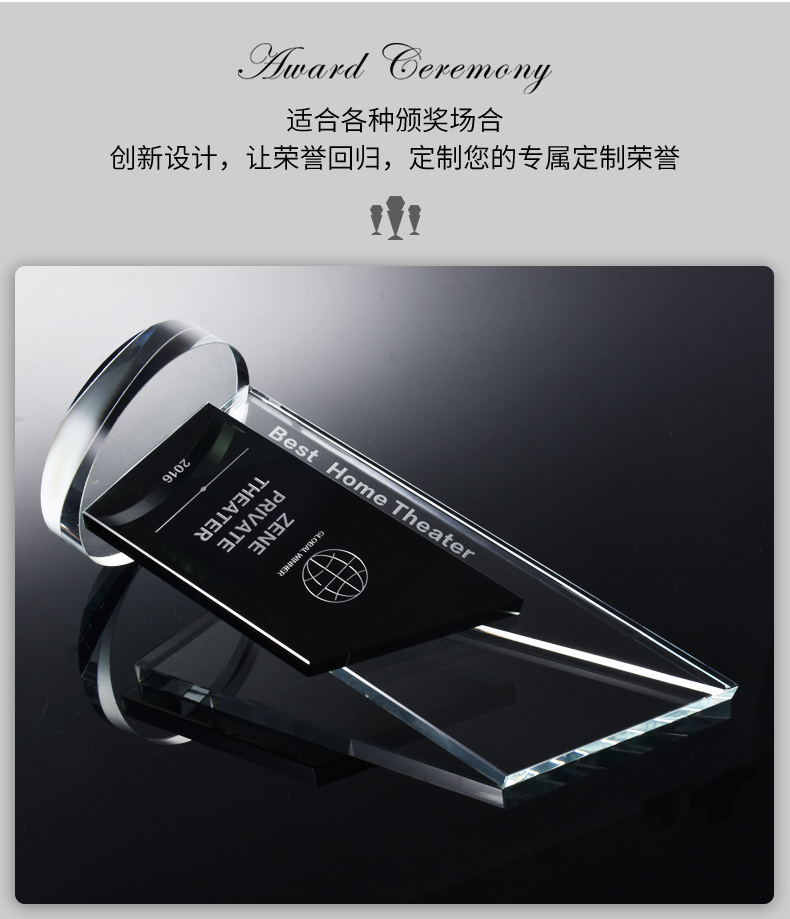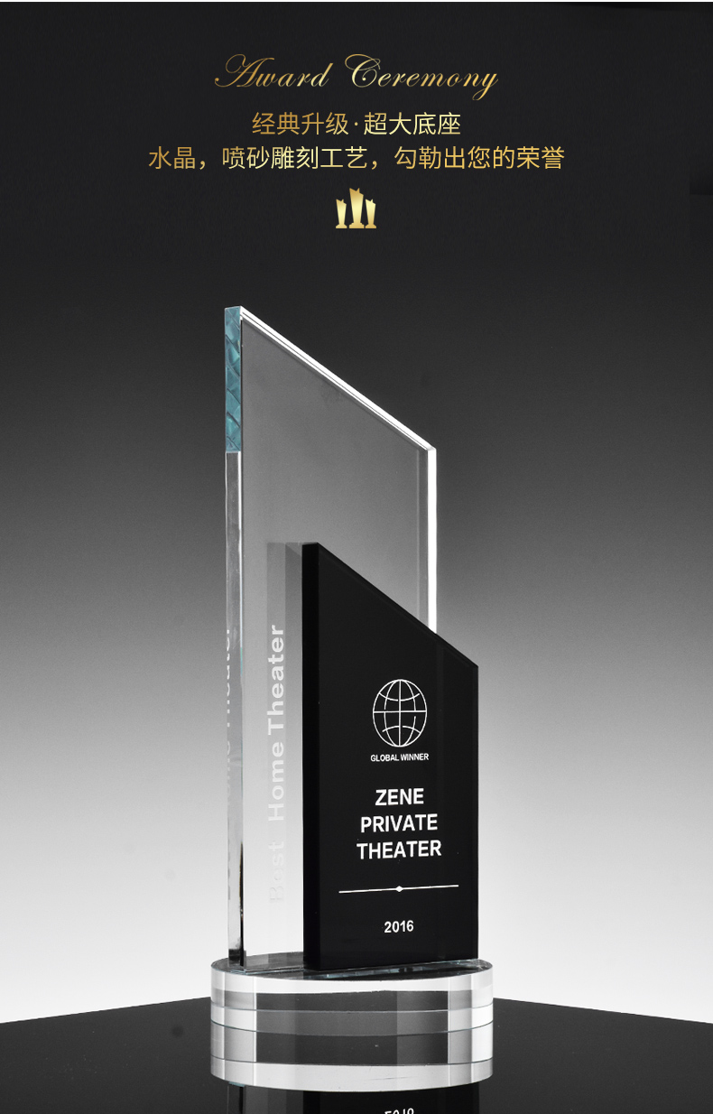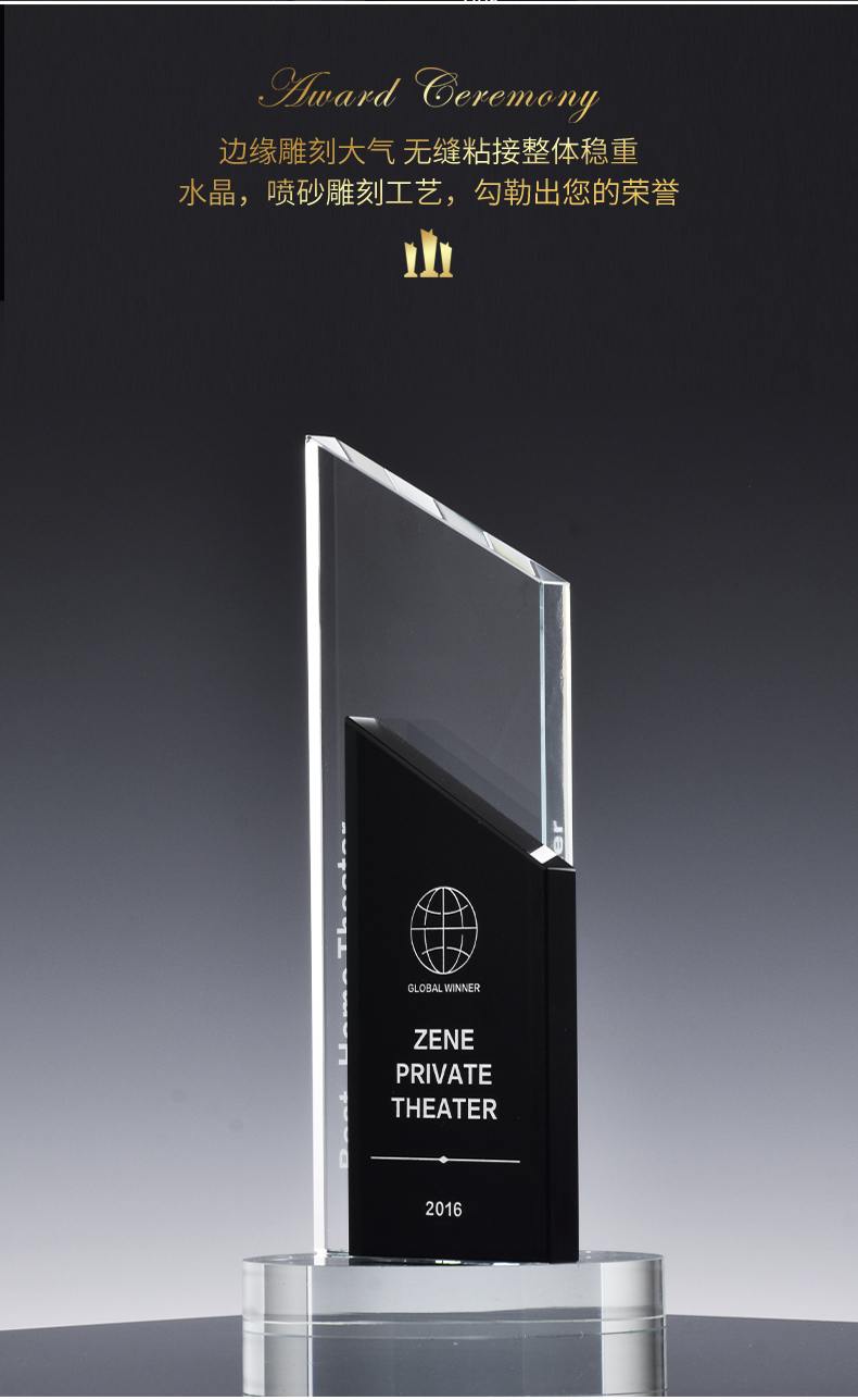创意水晶奖杯授权定制定做高档黑水晶牌荣誉奖座刻字制作奖牌纪念