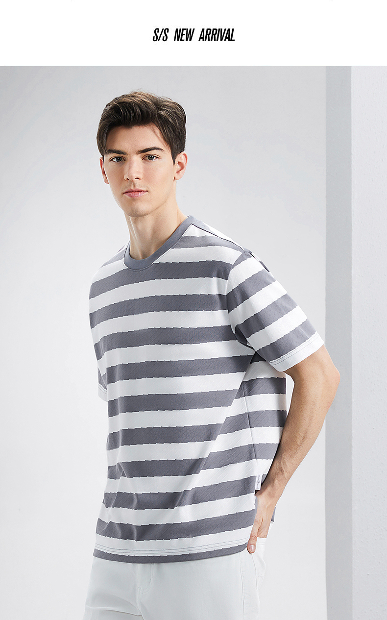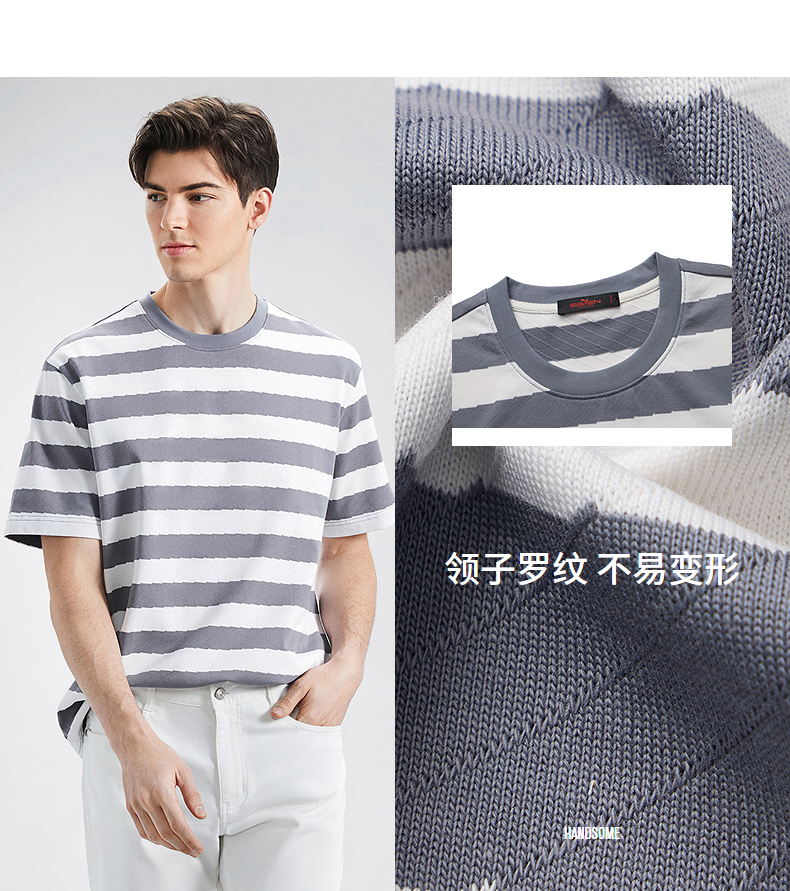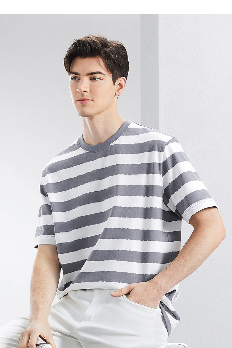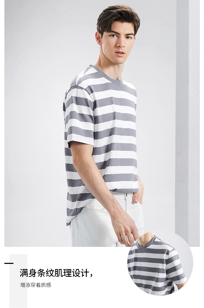 柒牌条纹短袖T恤男2024夏季新款时尚百搭中青年宽松圆领休闲上衣 126T73450