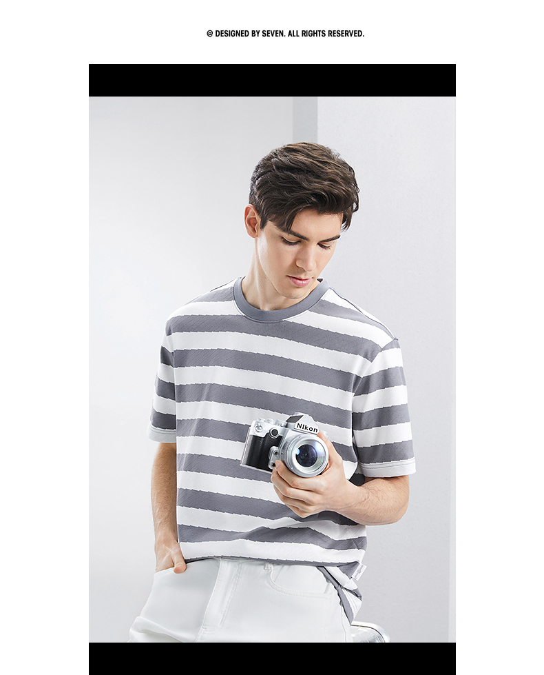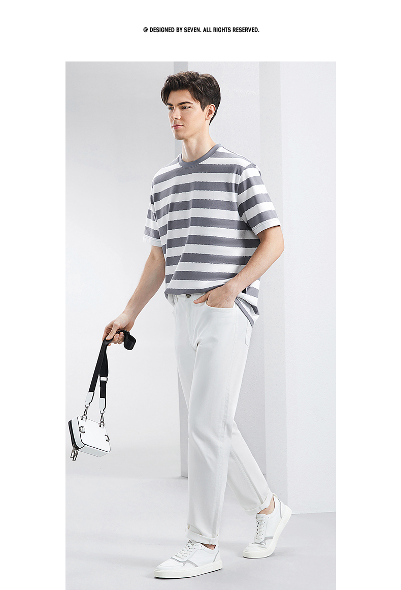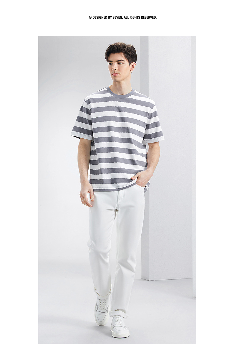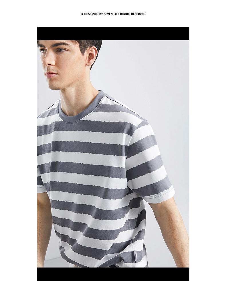 柒牌条纹短袖T恤男2024夏季新款时尚百搭中青年宽松圆领休闲上衣 126T73450