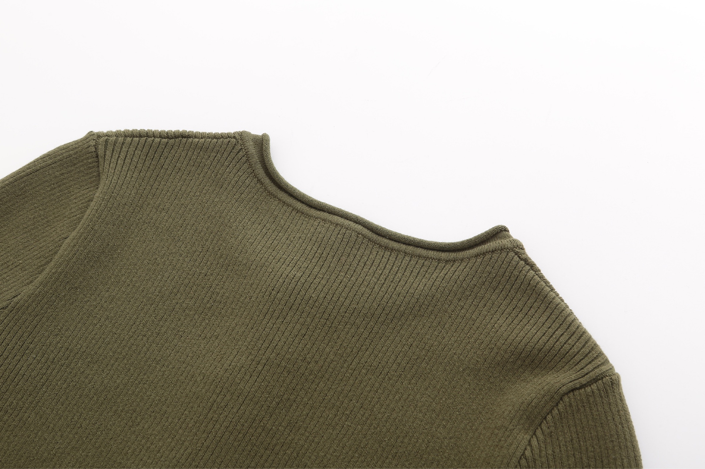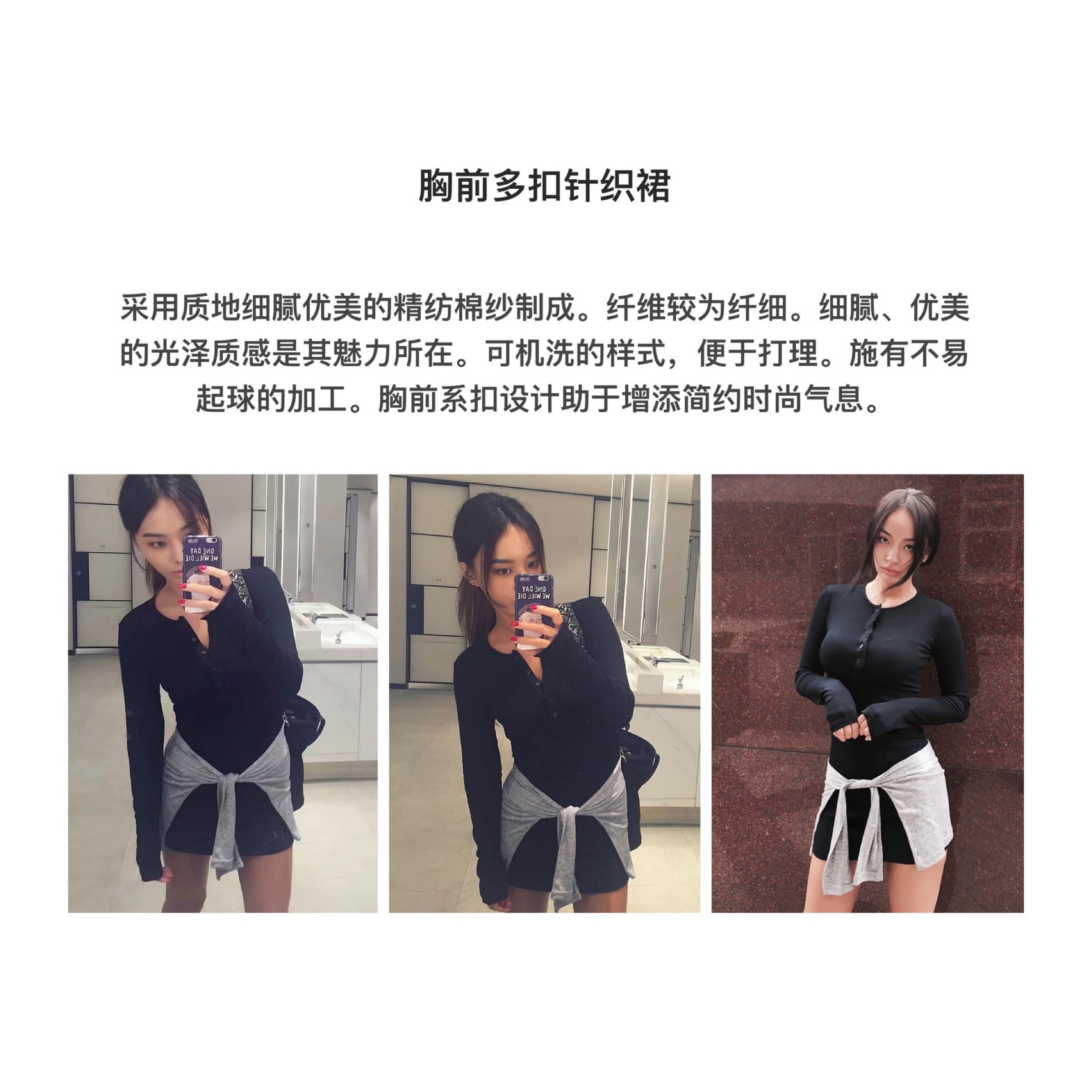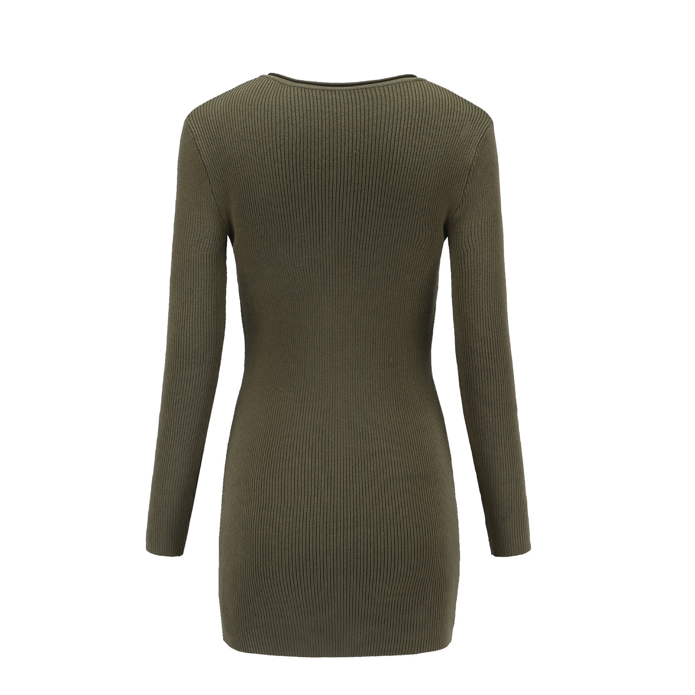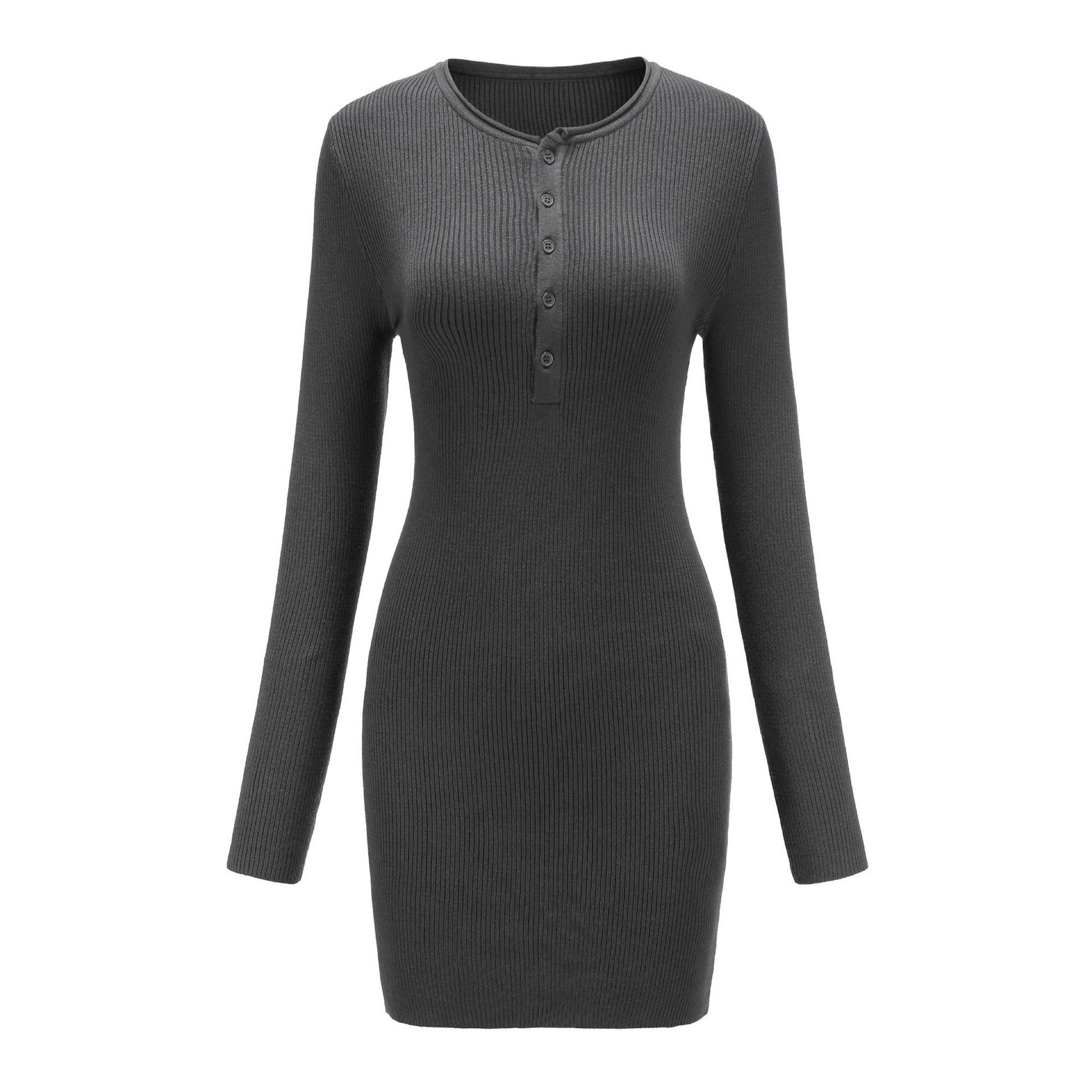【授权商品】888欧美复古包臀裙胸前系扣圆领长袖修身连衣裙针织裙秋冬女 2021【170888】