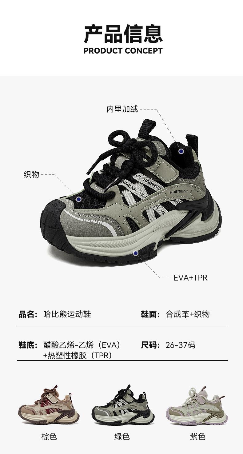 哈比熊加绒男童冬季二棉运动鞋休闲鞋男女童校园轻便棉鞋