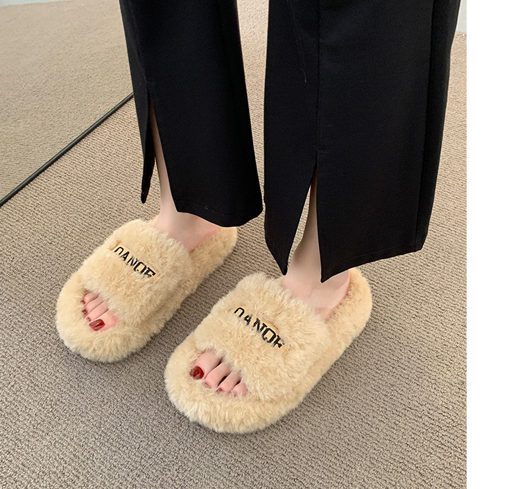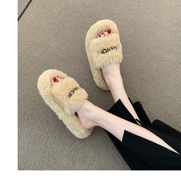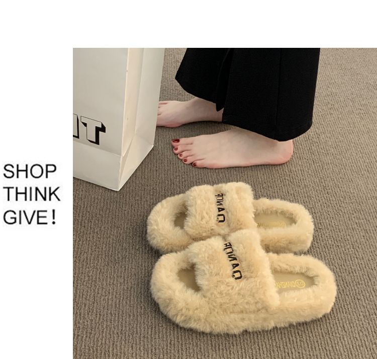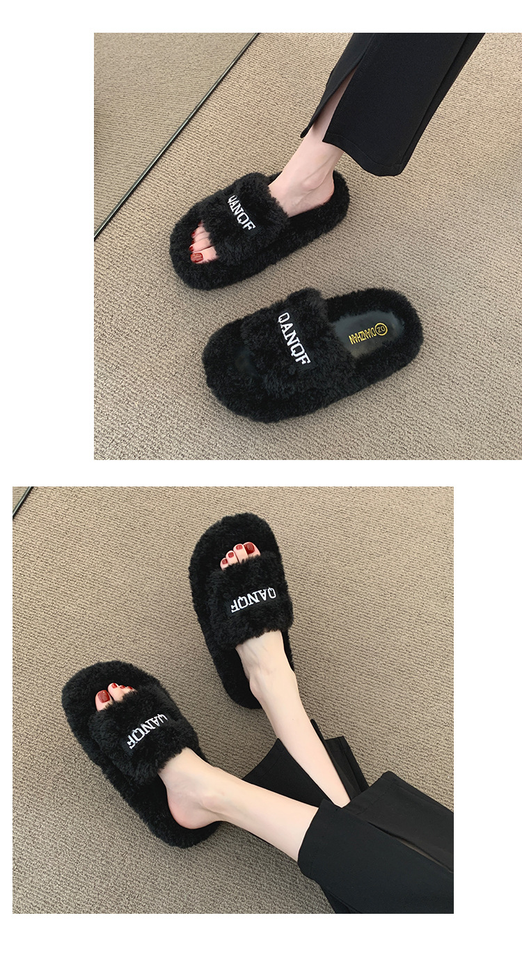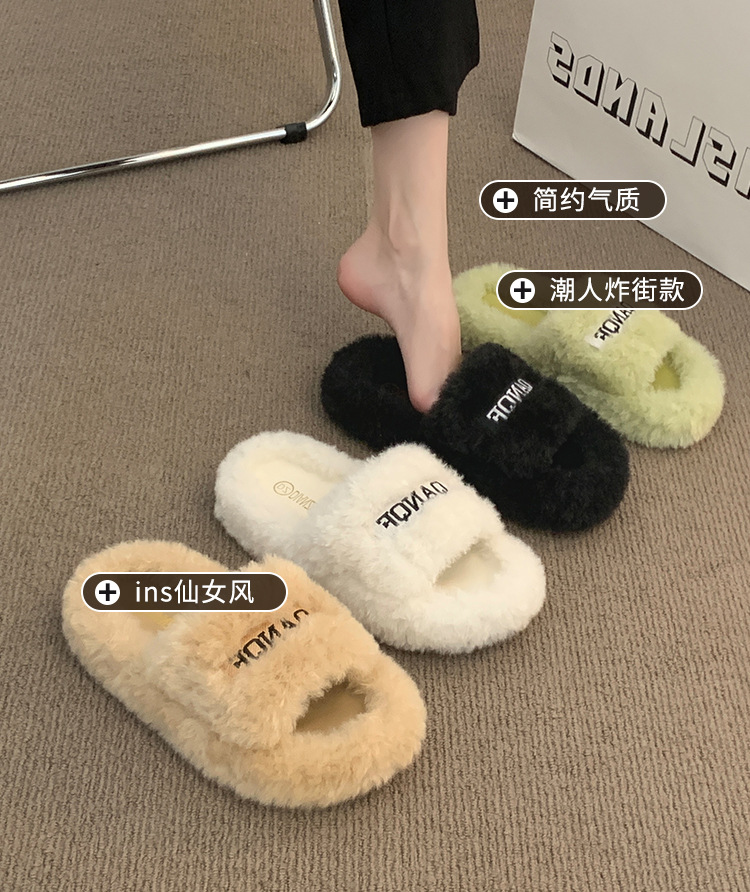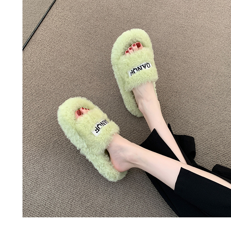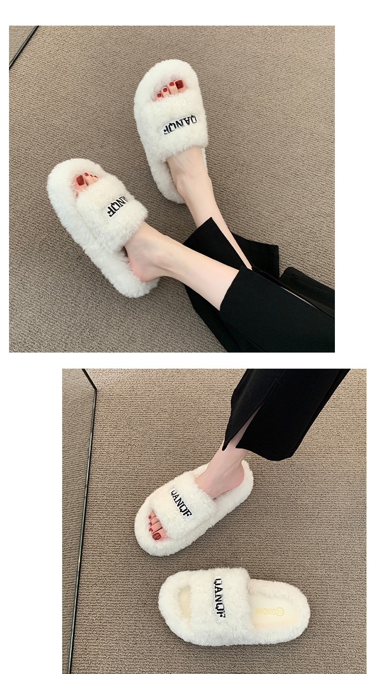 【ins仙女风❗️厚底毛毛拖鞋】柔软舒适,防滑耐磨,鞋面纹路细腻,舒适稳固后跟设计,软弹脚感,韩版时尚外穿毛绒居家室内一字棉拖QQ鞋