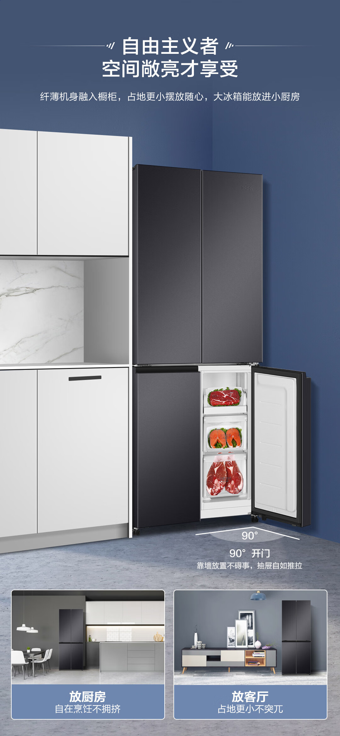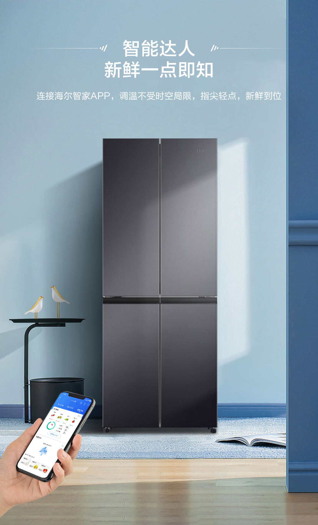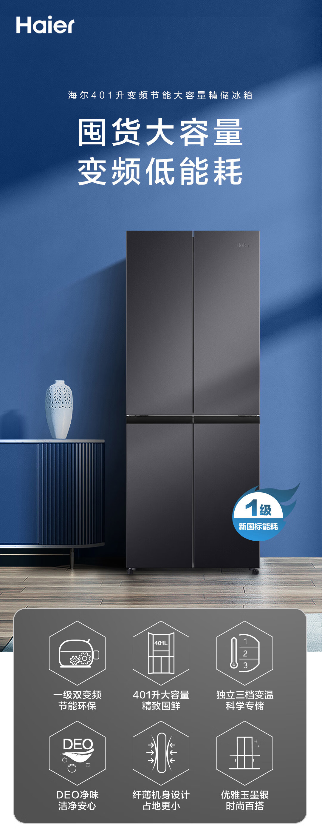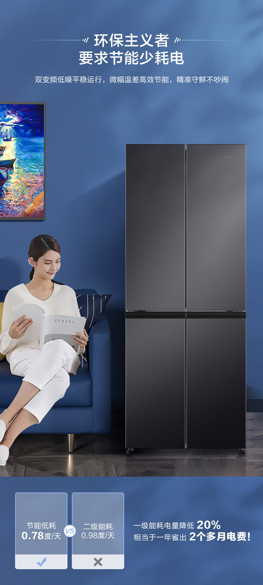 海尔 (Haier) 401升双变频风冷无霜十字双开门四开门多门超薄家用电冰箱一级能效超大容量BCD-401WLHTDEDSDU1