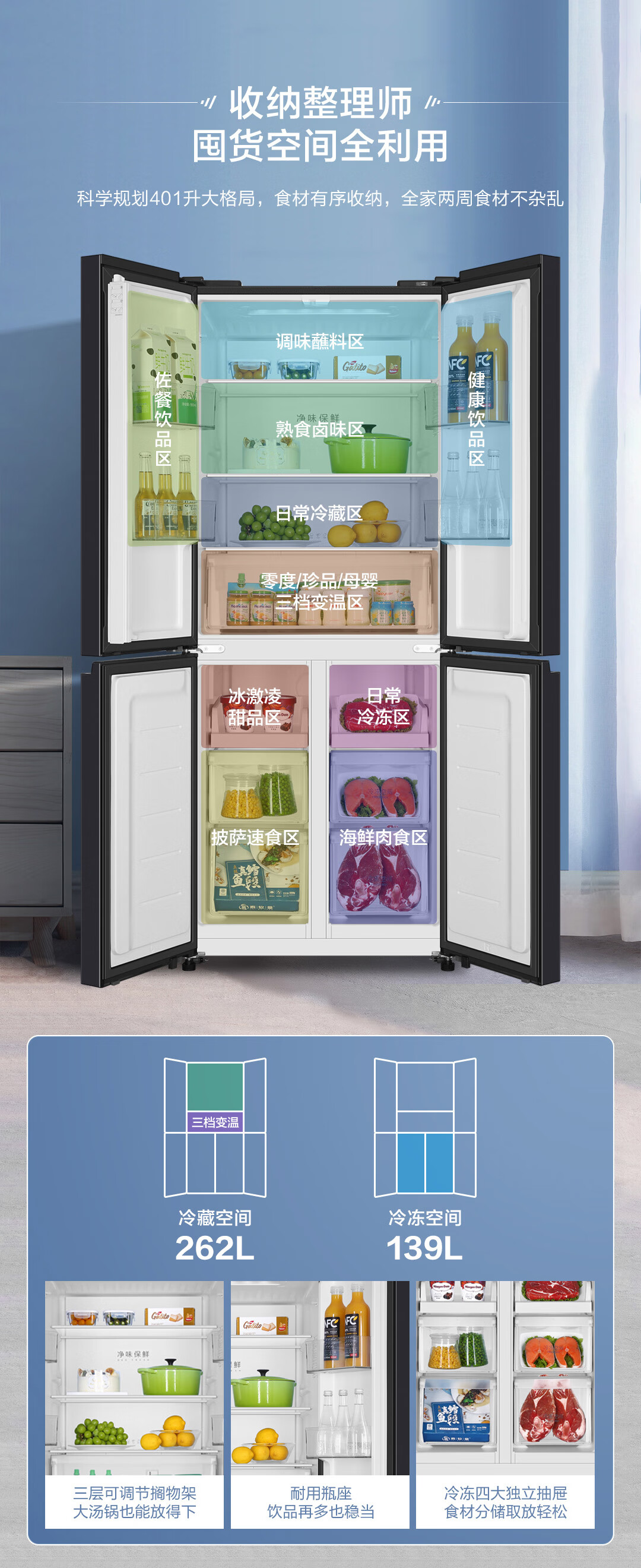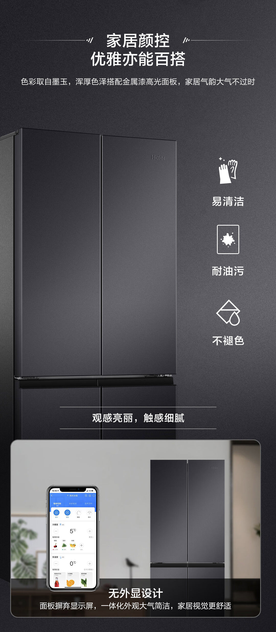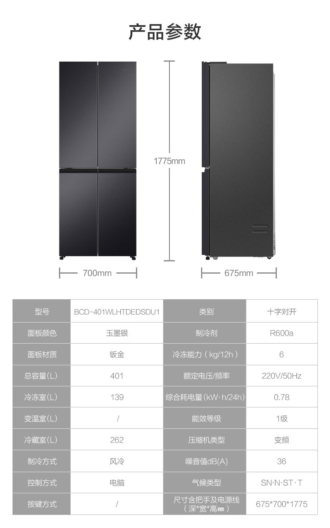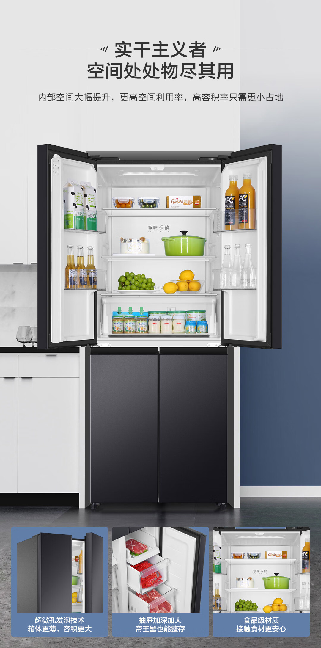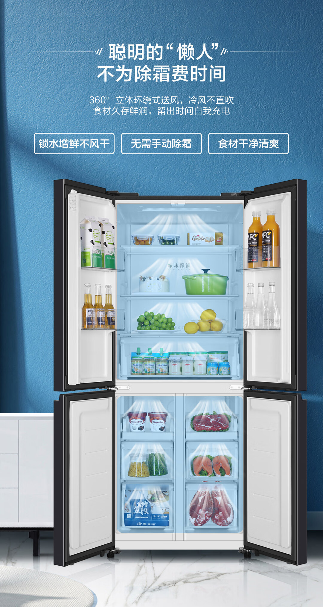海尔 (Haier) 401升双变频风冷无霜十字双开门四开门多门超薄家用电冰箱一级能效超大容量BCD-401WLHTDEDSDU1