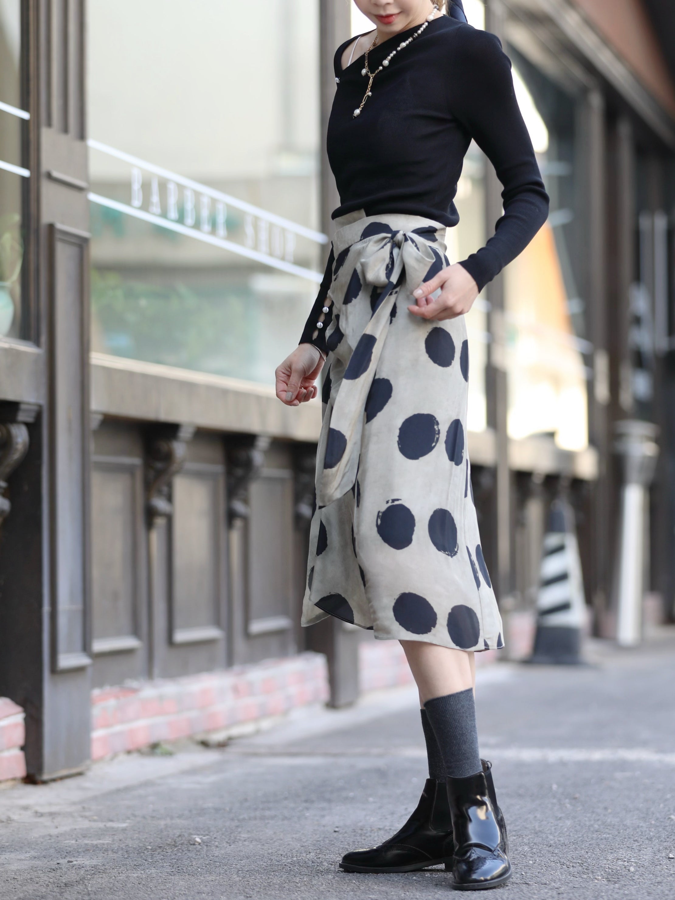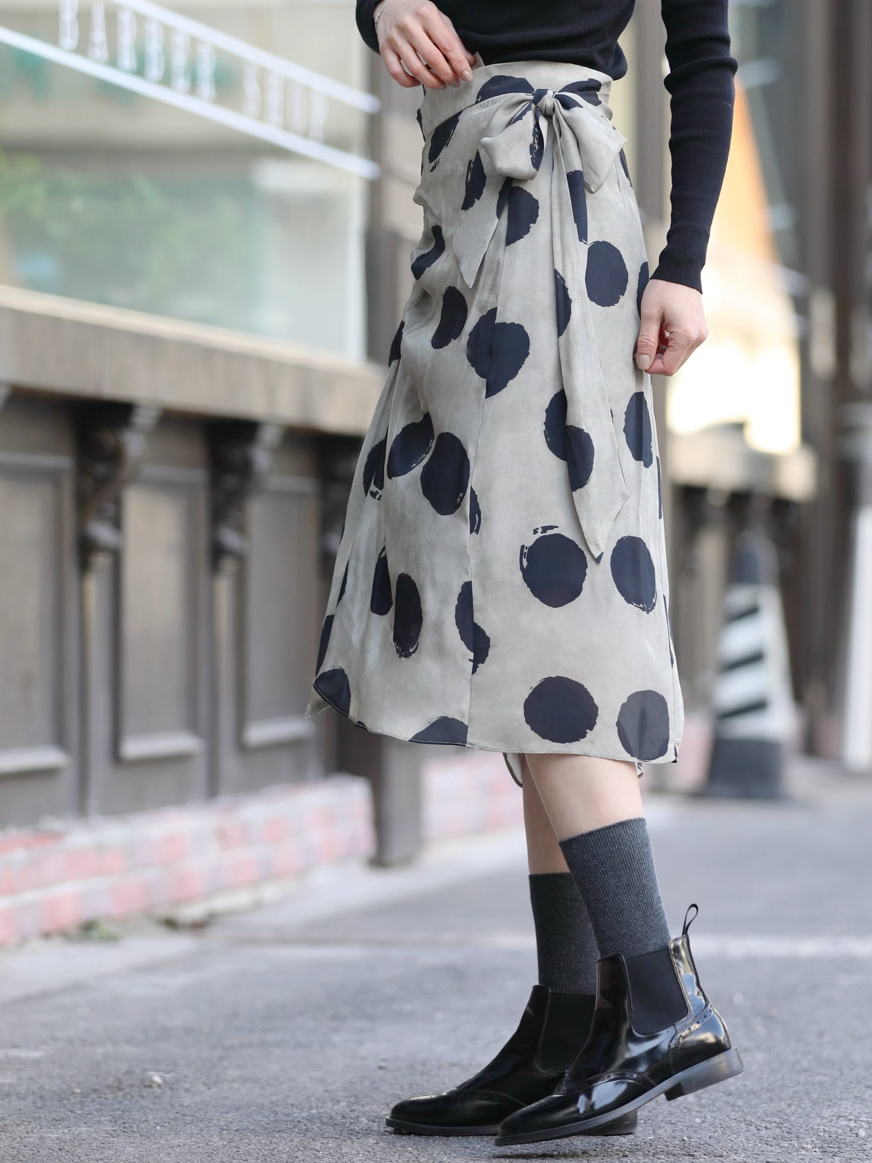 TYNVIE 荷叶边裙摆裹身裙 - 蓝色波点