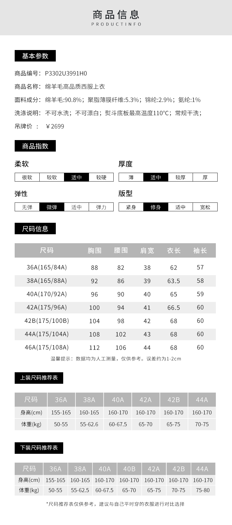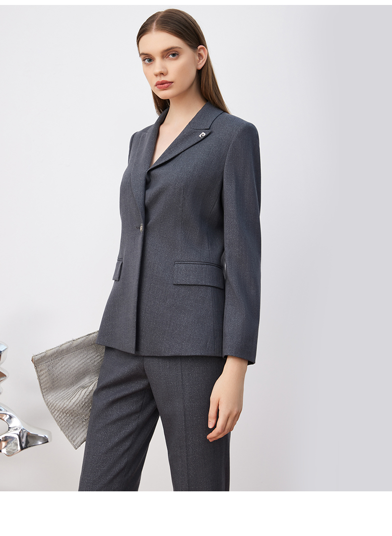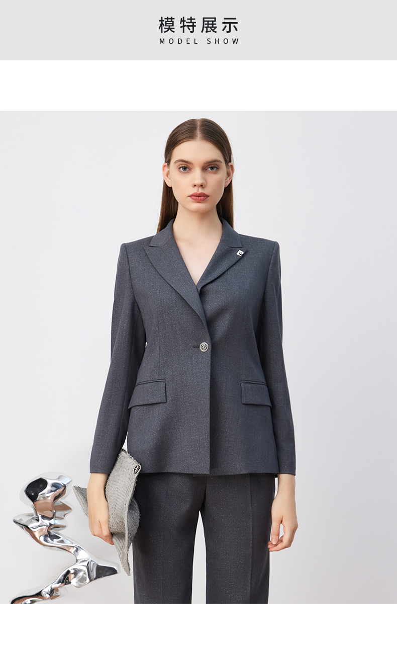 商场同款皮尔卡丹女装秋冬新款灰色绵羊毛西服上衣P3302U3991H0