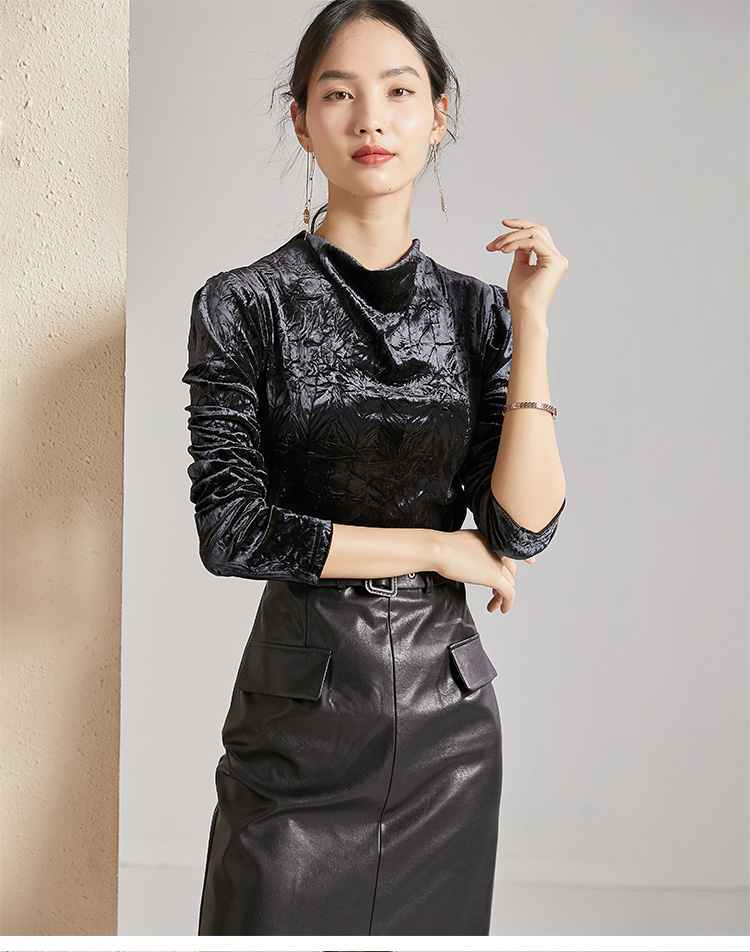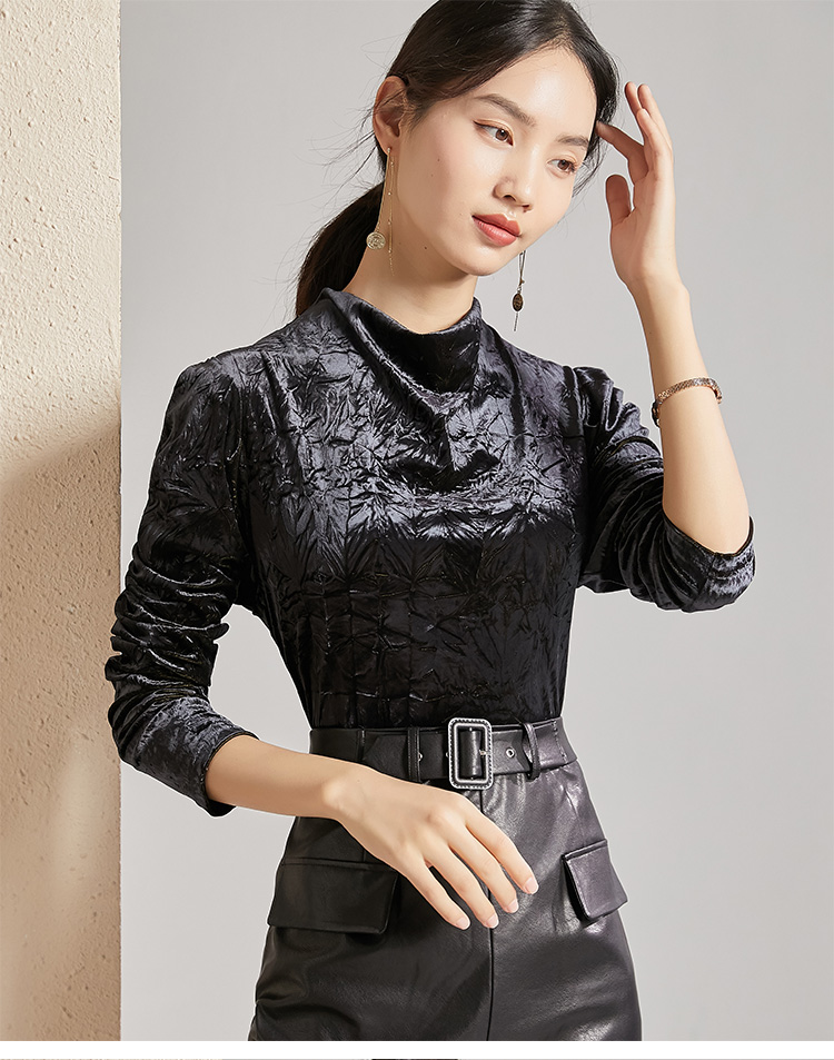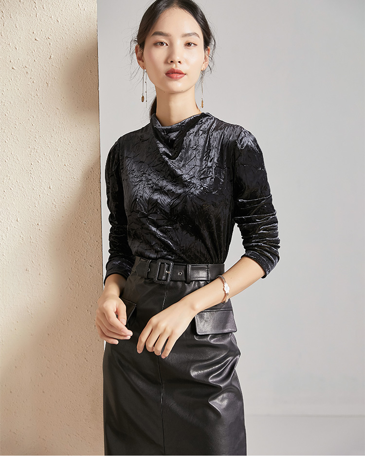 剩S/M 芳外时尚复古百搭打底衫上衣女优雅通勤长袖T恤