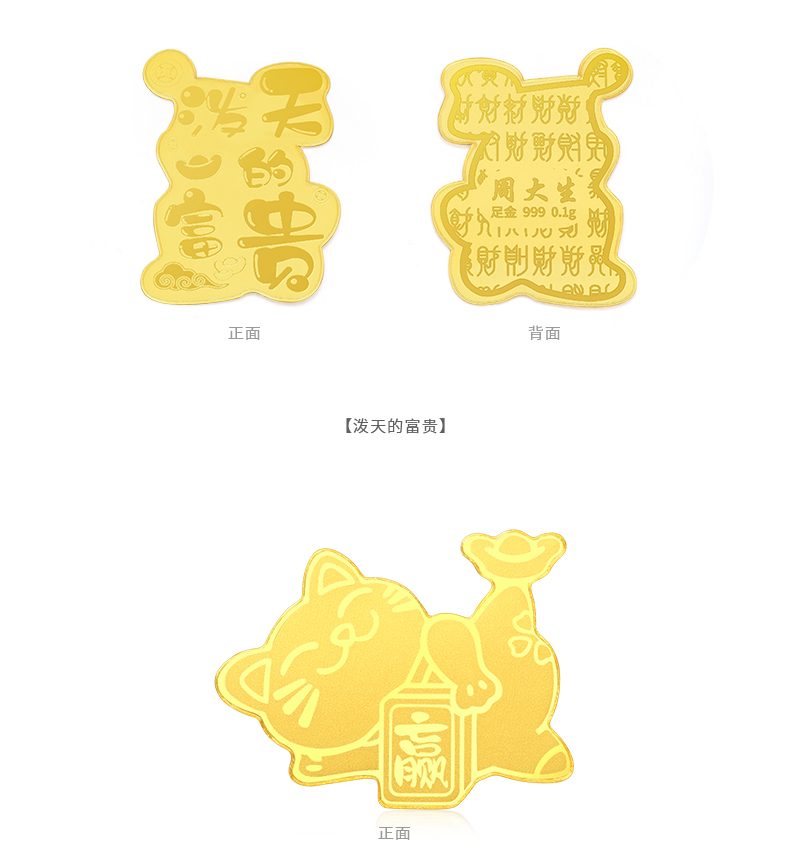 周大生黄金足金条投资金币发财富贵金片公主请发财送女友-团购