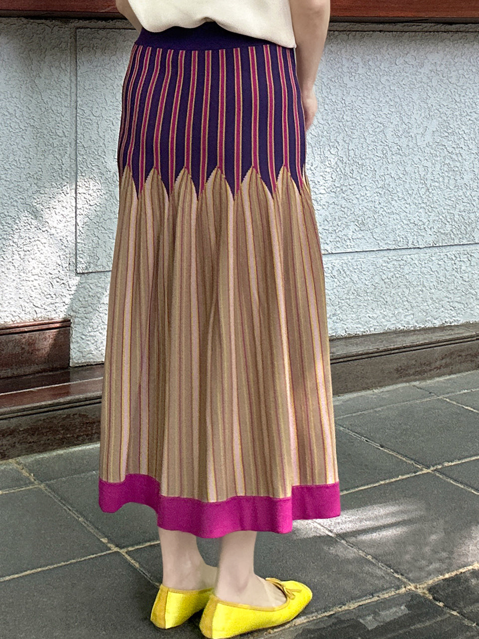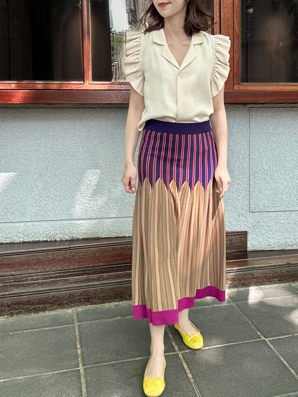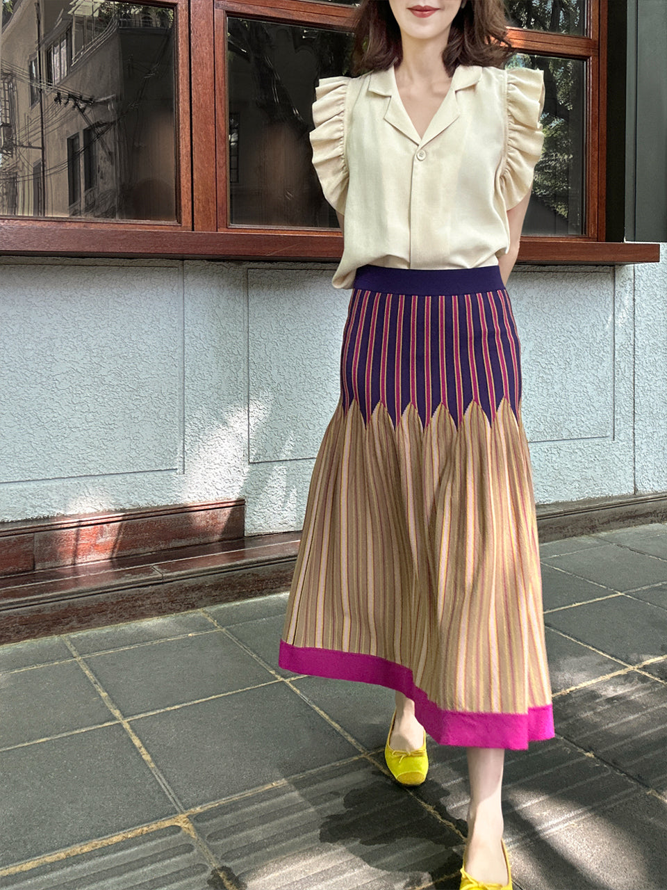 TYNVIE 栗色条纹侧袋欧根纱半身裙