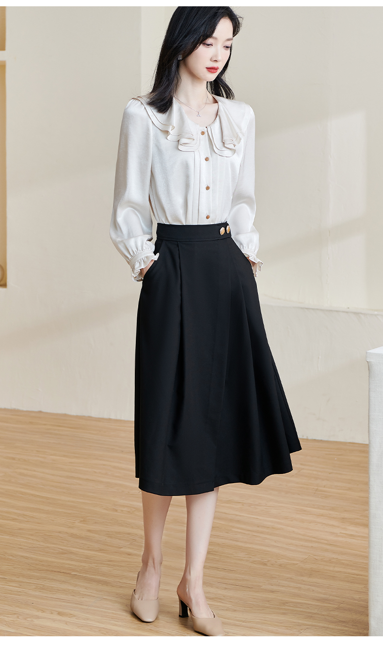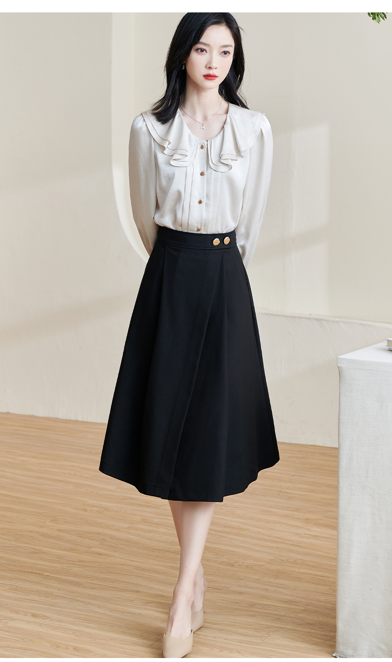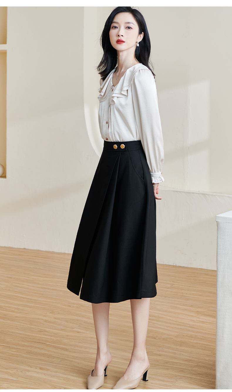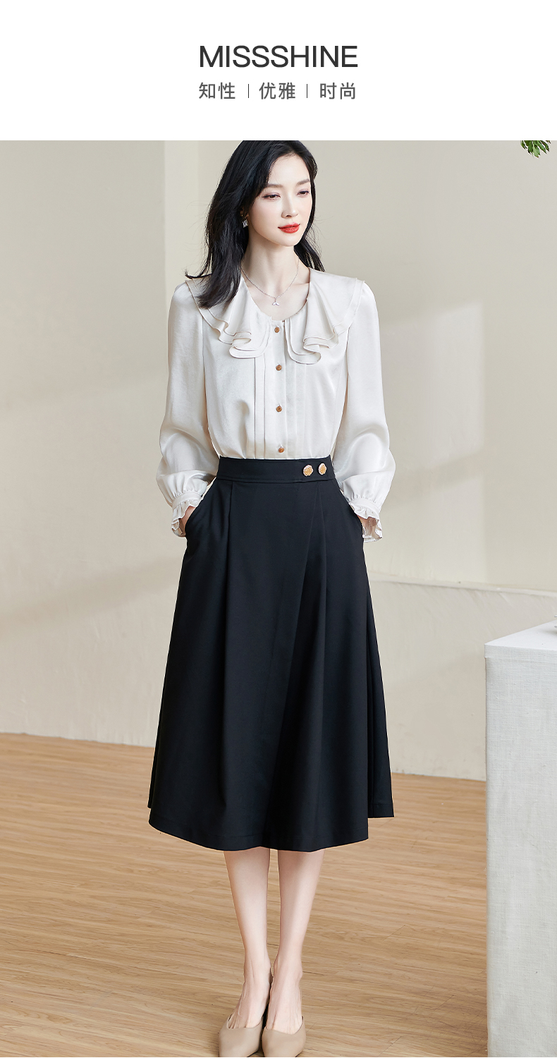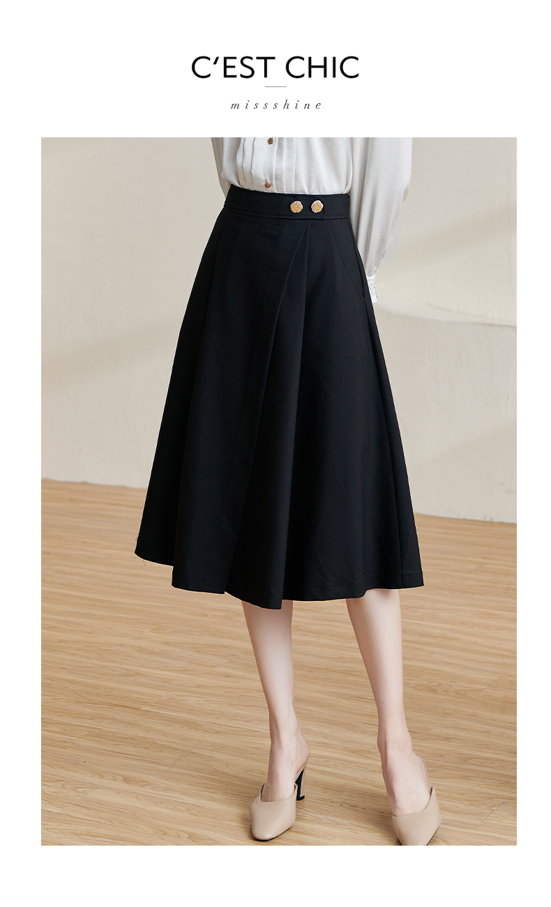 剩S/XXL 米思阳2026春季新款简约百搭赫本风半身裙黑色修身高腰中长裙2070