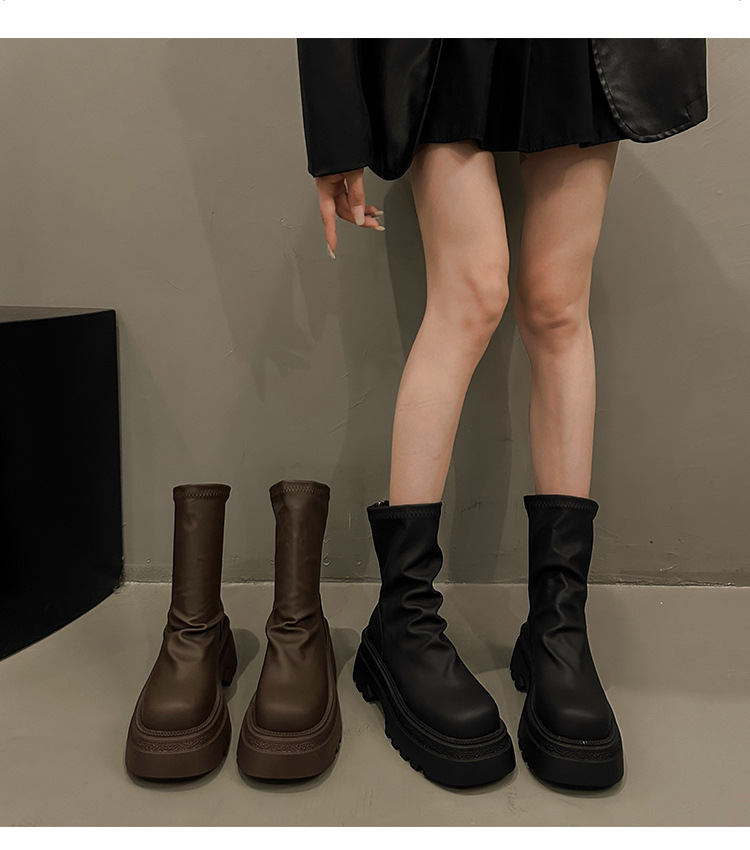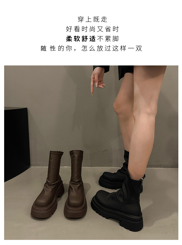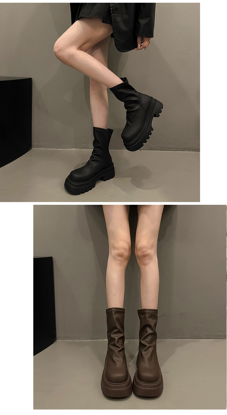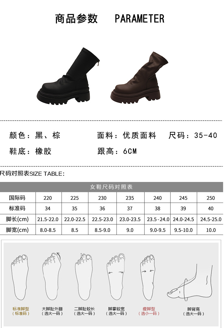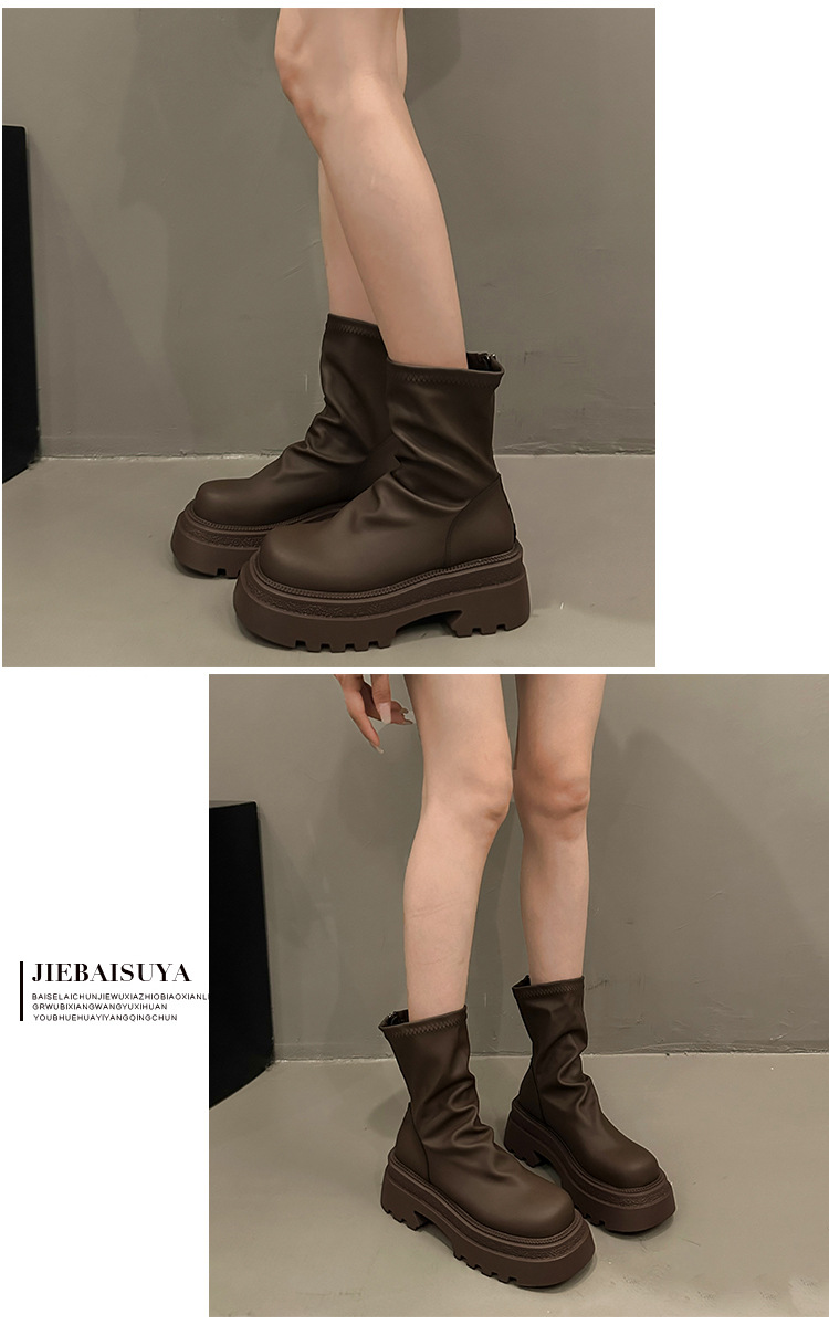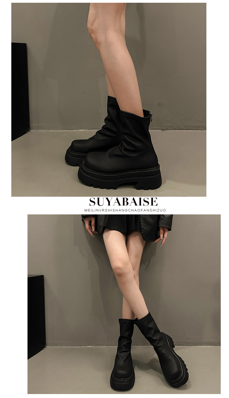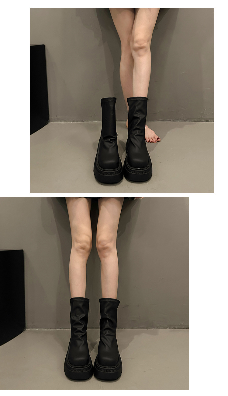 【YW】无忧购粗跟短靴女厚底褶皱堆堆靴子时尚显瘦弹力瘦瘦靴C66(3.1截单后3-7天发货)