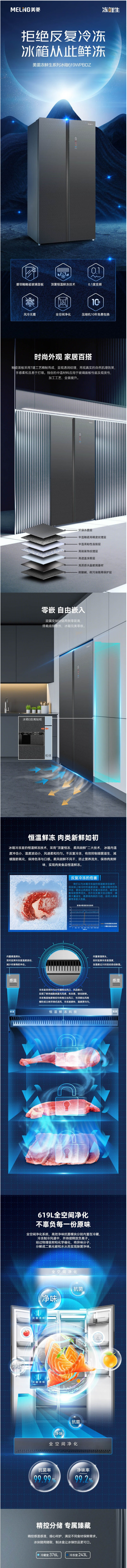 美菱(MeiLing)(202802)【线下同款】对开门双开门玻璃面板冰箱 家用底部散热超薄嵌入式智能一级能效双变频无霜大冰箱 BCD-619WPBDZ