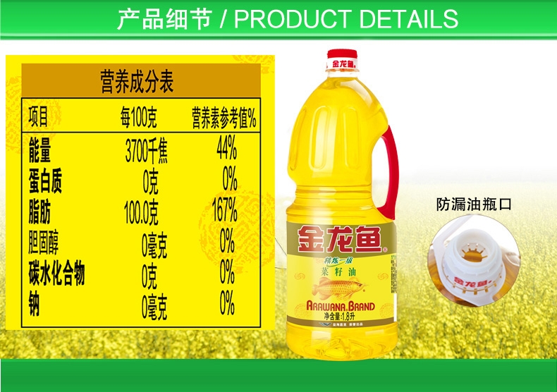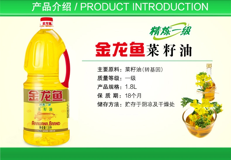 金龙鱼精炼一级菜籽油1.8L【BC】【JLY】