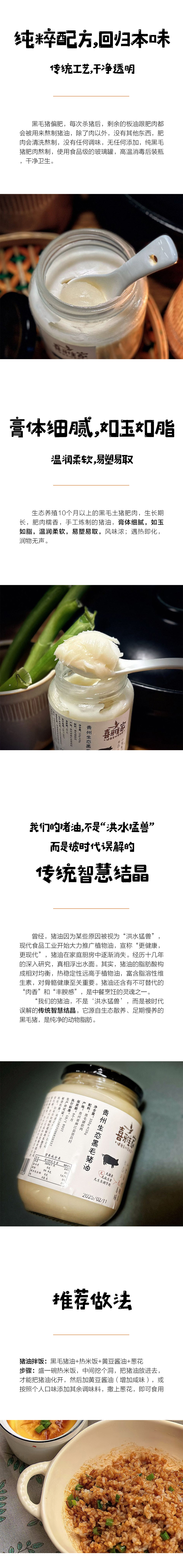 贵州生态黑毛猪油(基地直发-顺丰快递)| 350g±20g/瓶,来自贵州贵阳,生产者:贵州瓢虫【合作生产,公平贸易】