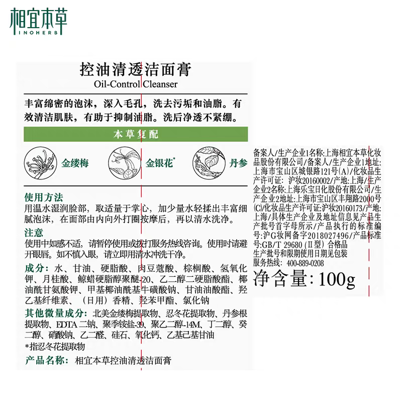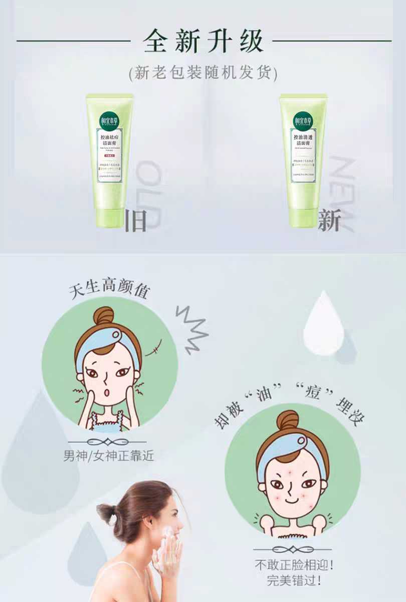 相宜本草控油祛痘洗面奶女泡沫洁面膏深层清洁学生正品