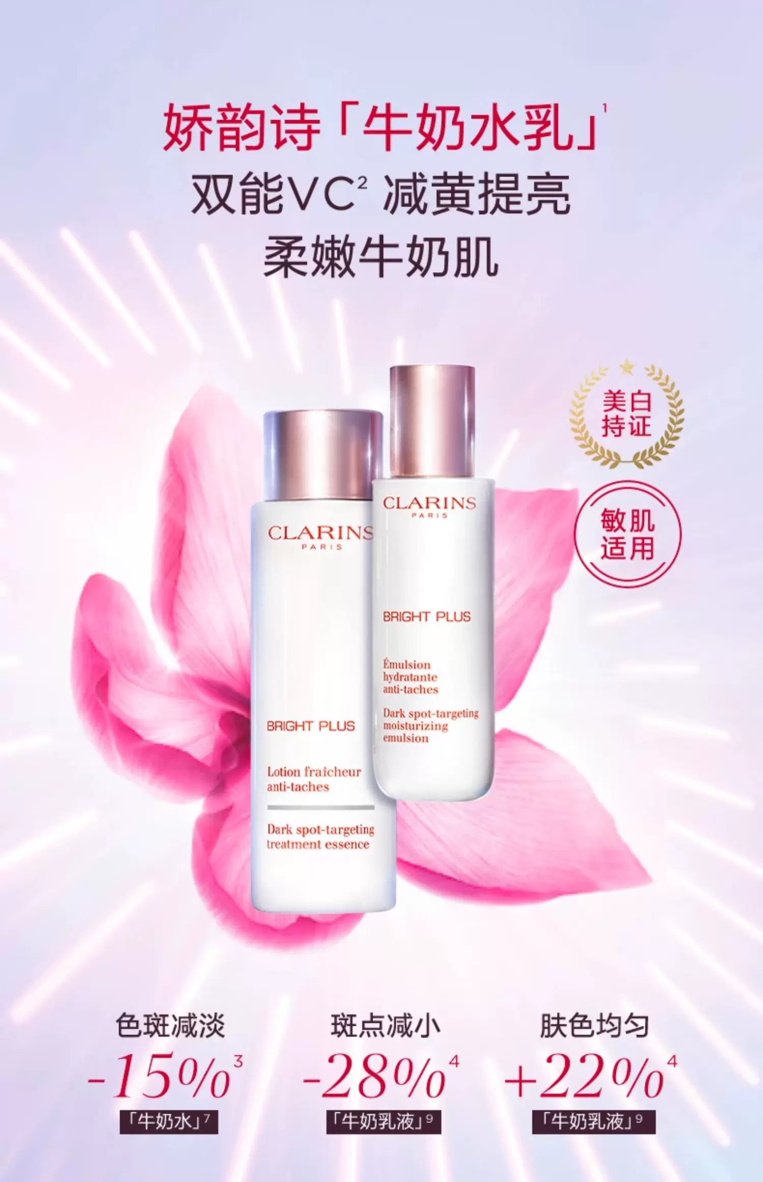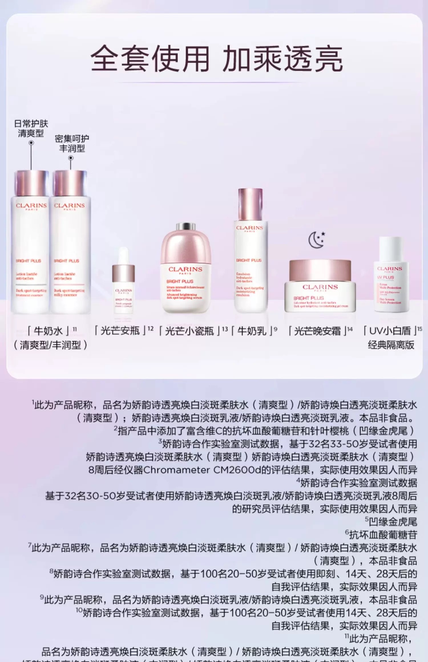 Clarins/娇韵诗牛奶水乳套装两件套 新透白系列美白淡斑透亮补水 金晨同款护肤品