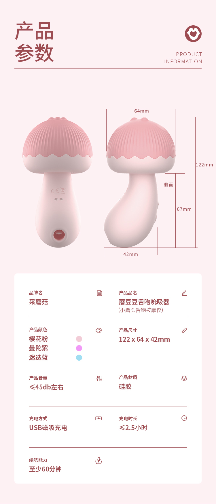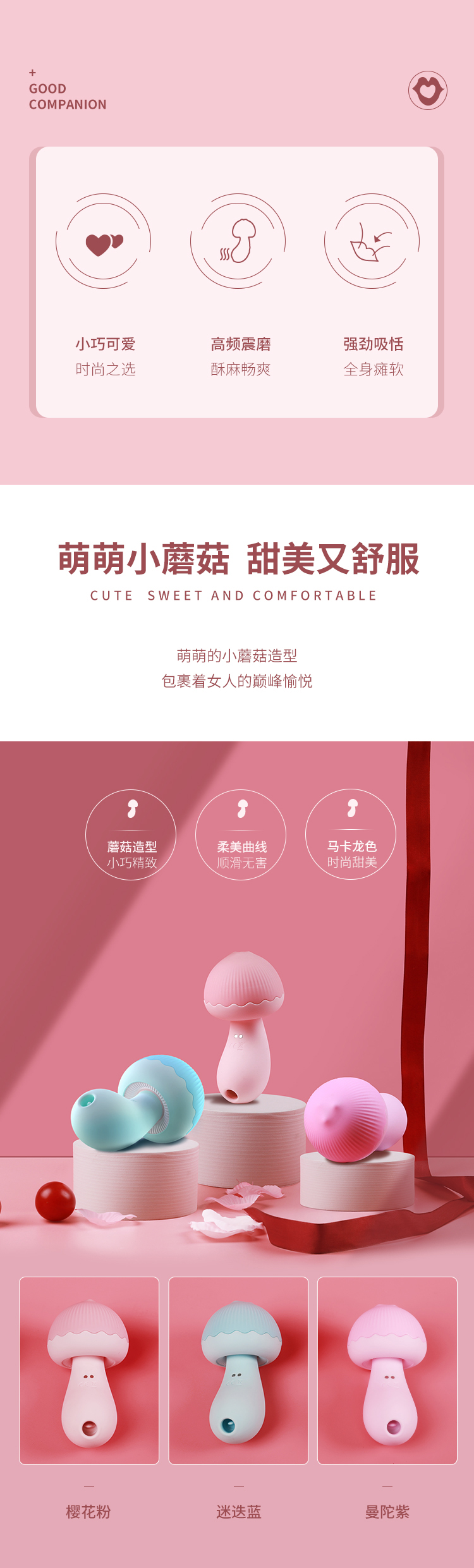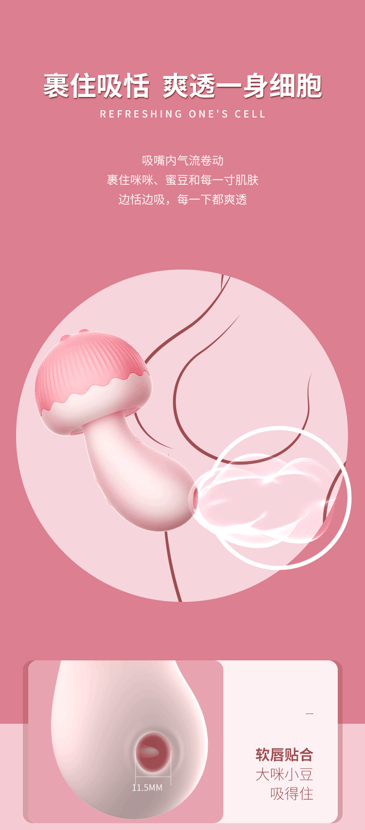 【酱姨 粉丝专享】蘑豆豆新版双重刺激高频震磨舌吻吮吸器