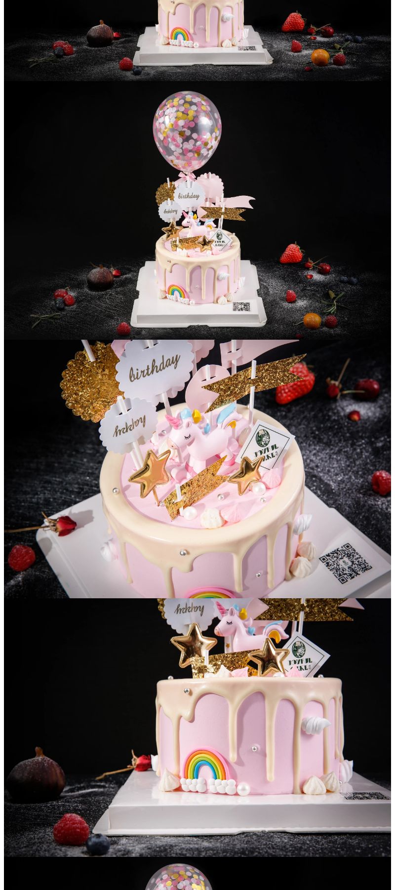 萌萌哒粉色独角兽滴落蛋糕