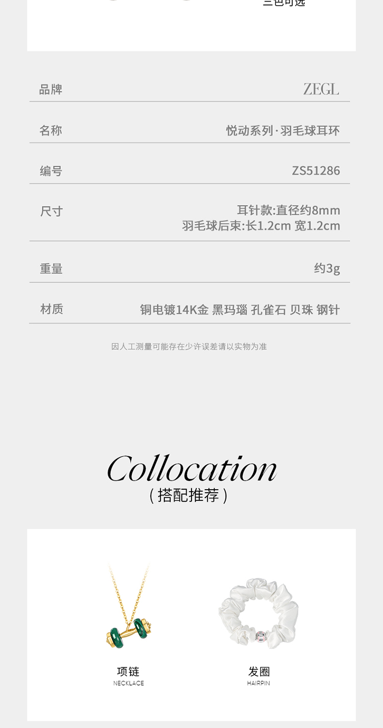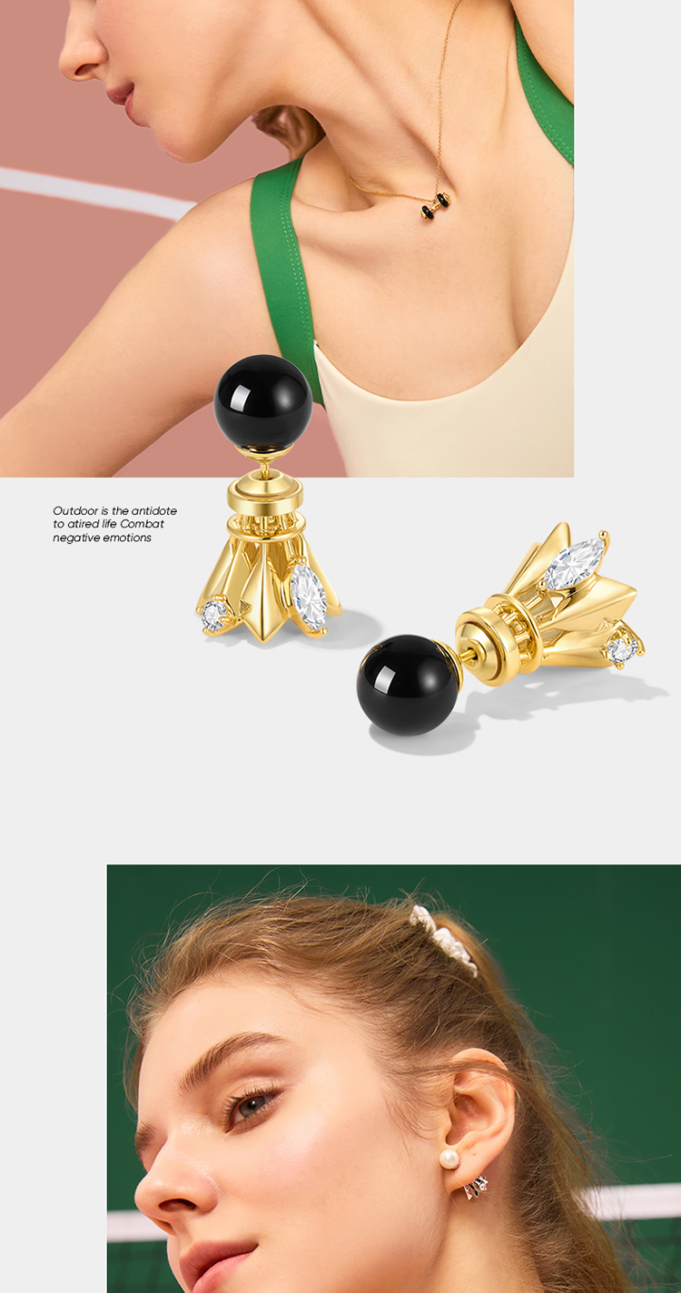 ZEGL设计师运动系列羽毛耳环女2024新款爆款黑玛瑙耳钉独特耳饰品