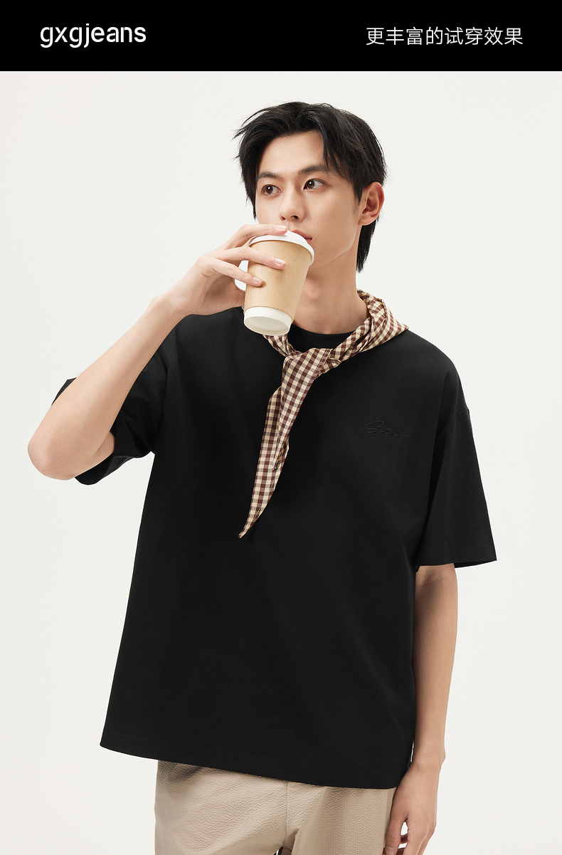 gxg.jeans男装 多色字母绣花基础休闲宽松短袖T恤男 25年夏热卖