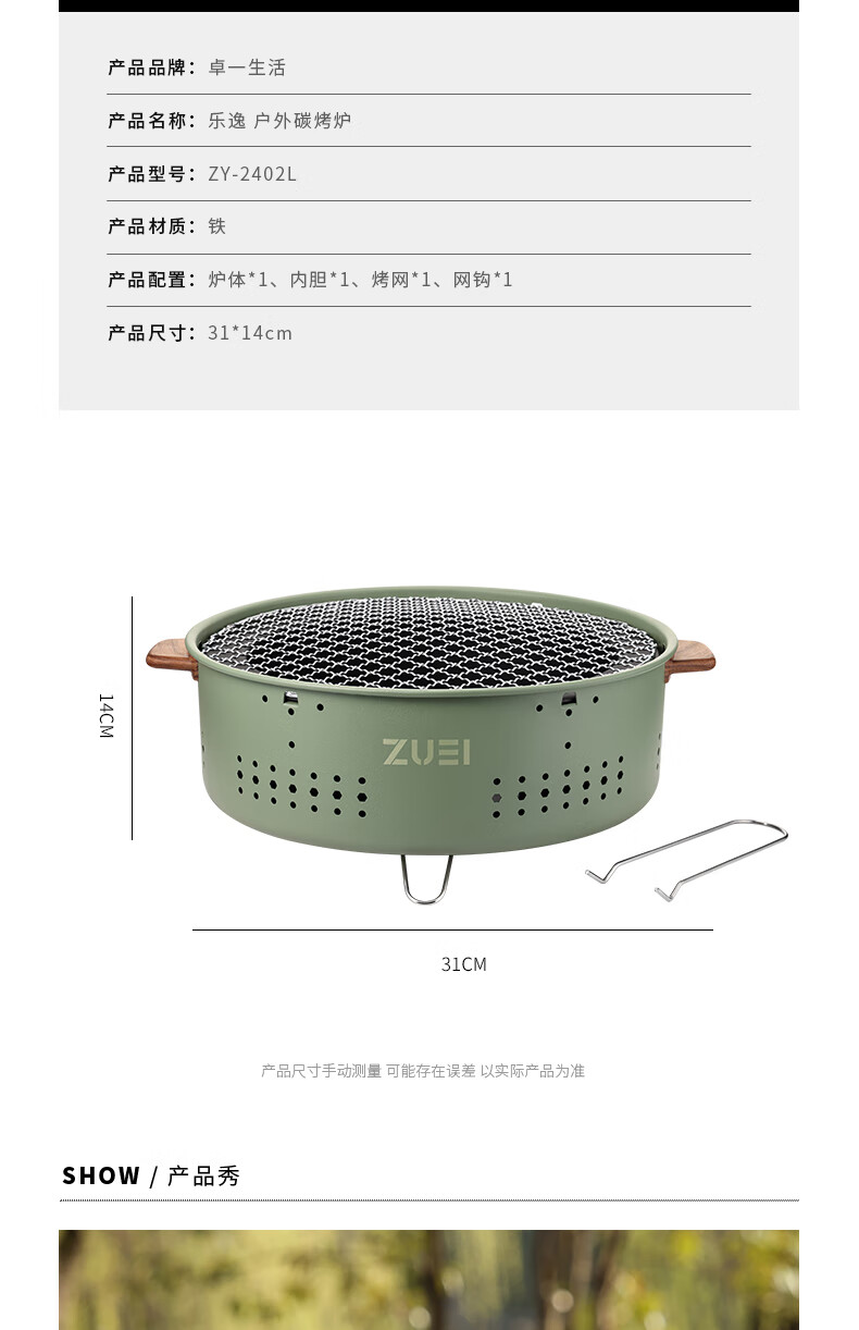 【分仓直发包邮】卓一乐逸户外碳烤炉ZY-2402L