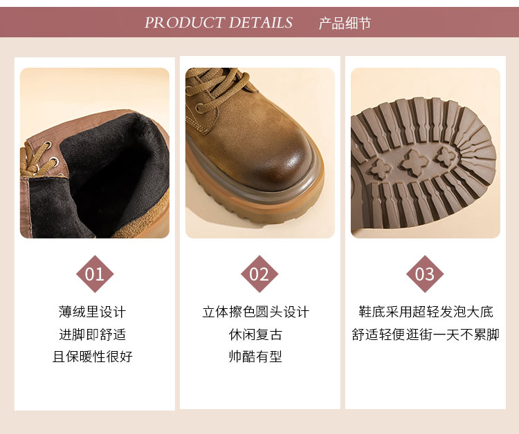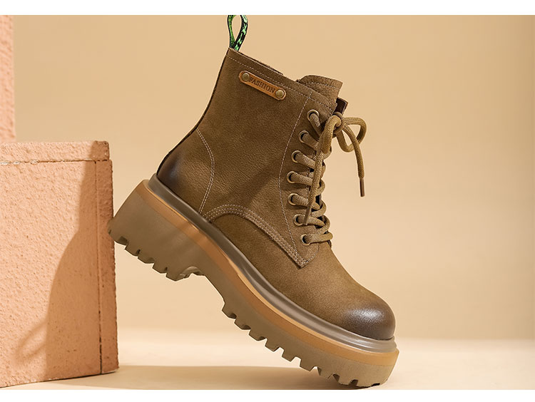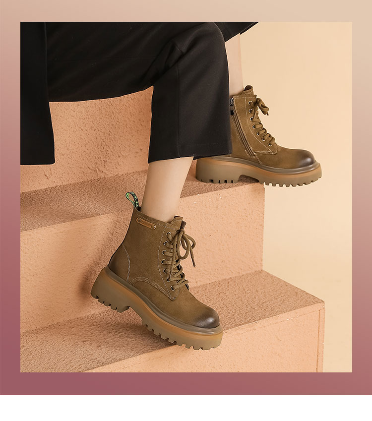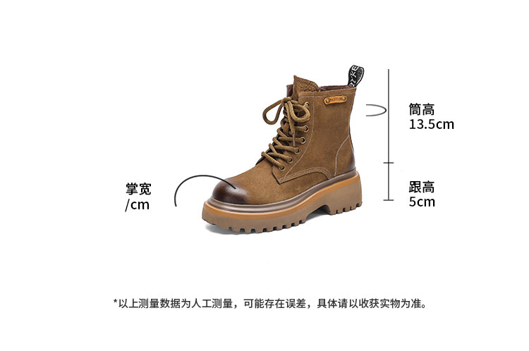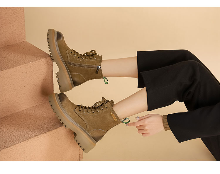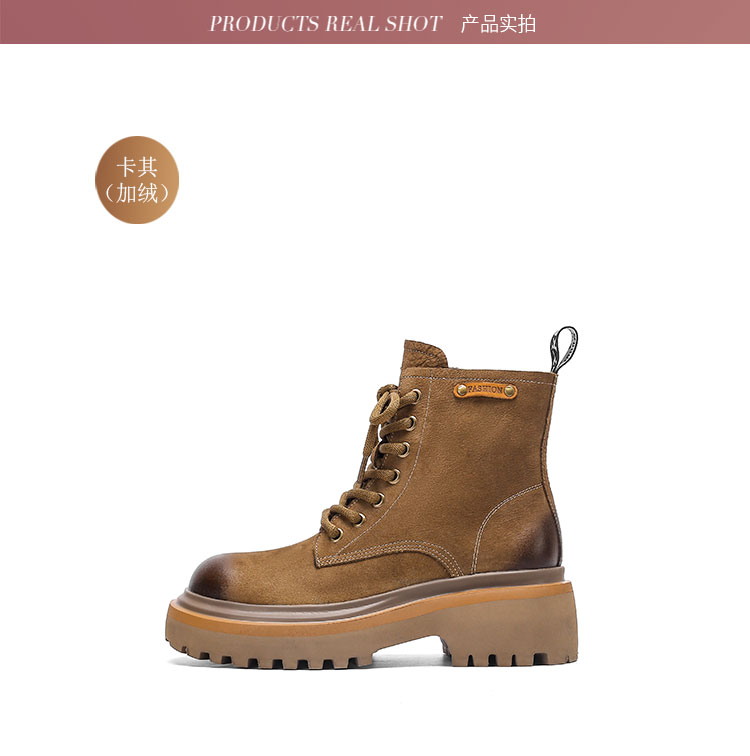 西村名物冬季新款女靴牛皮革系带平底圆头时尚马丁靴41701