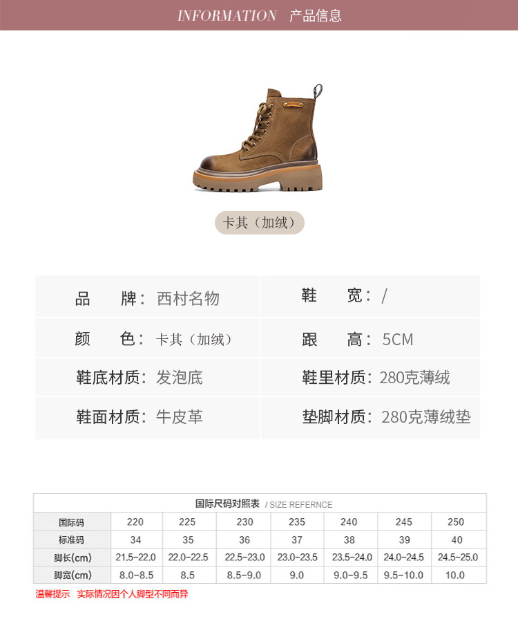西村名物马丁靴女短靴春秋冬季短筒显瘦英伦学院45431