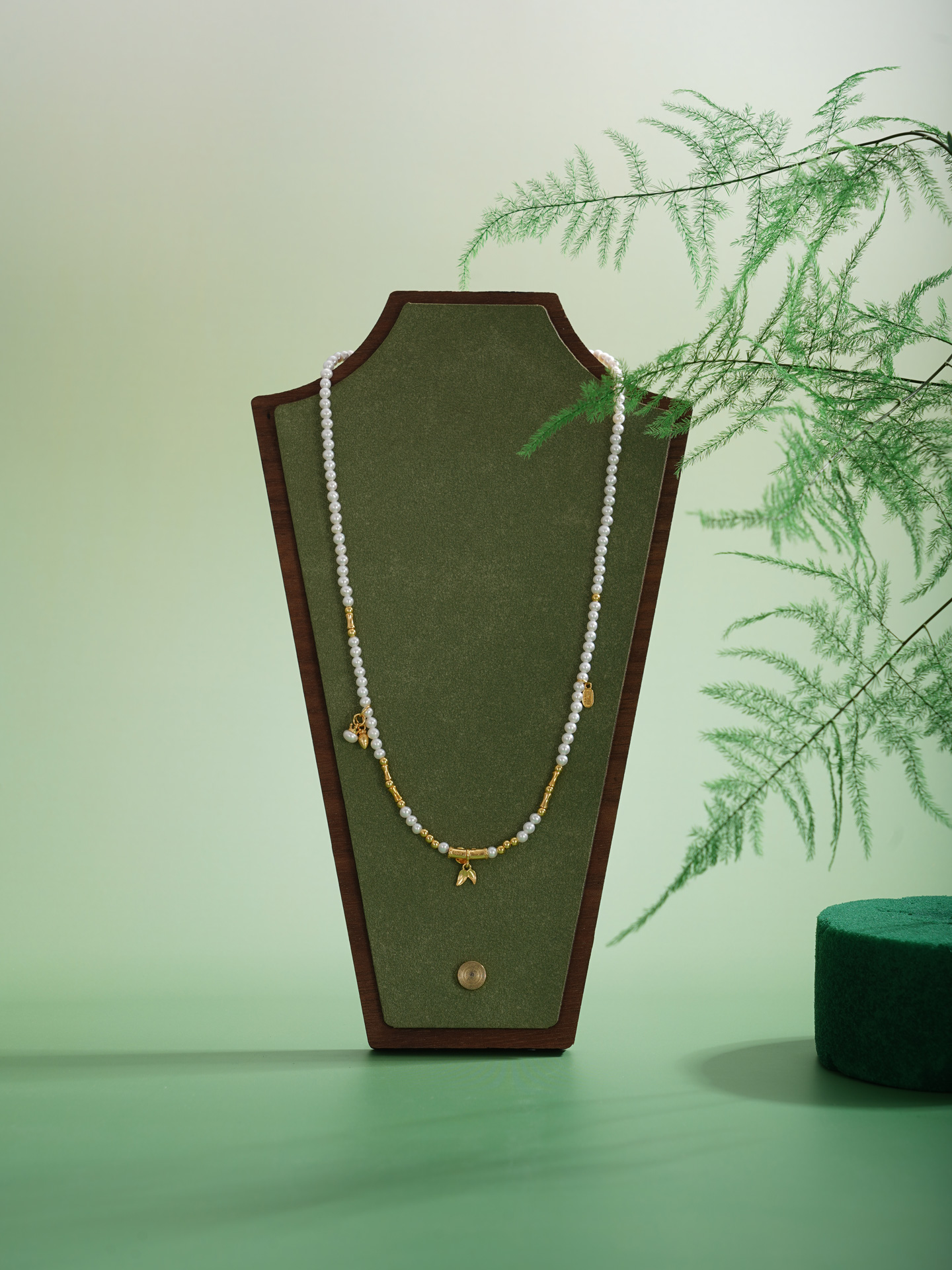 子佩集【竹福好运】银S925珍珠项链【QNX0009】3mm珠竹叶镀金2512
